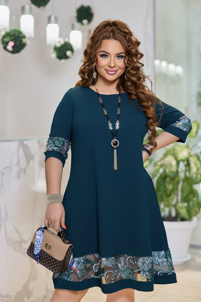 - Ткань: креп дайвинг, вставки из кружевной вышивки на сетке