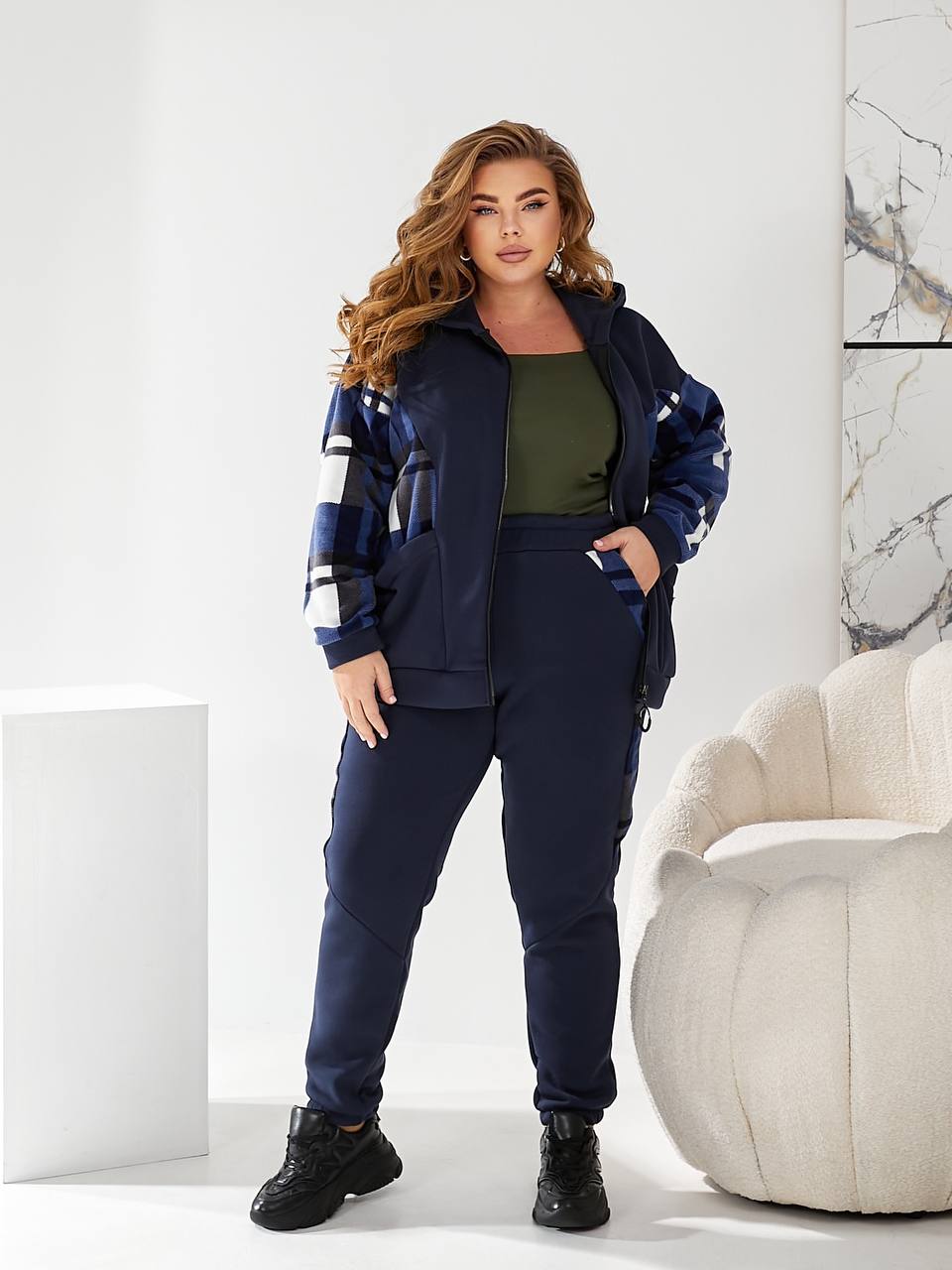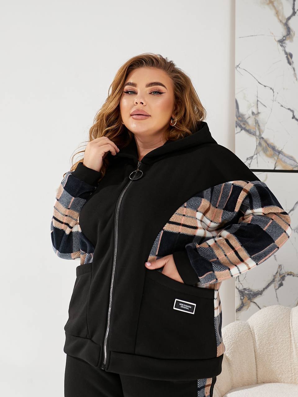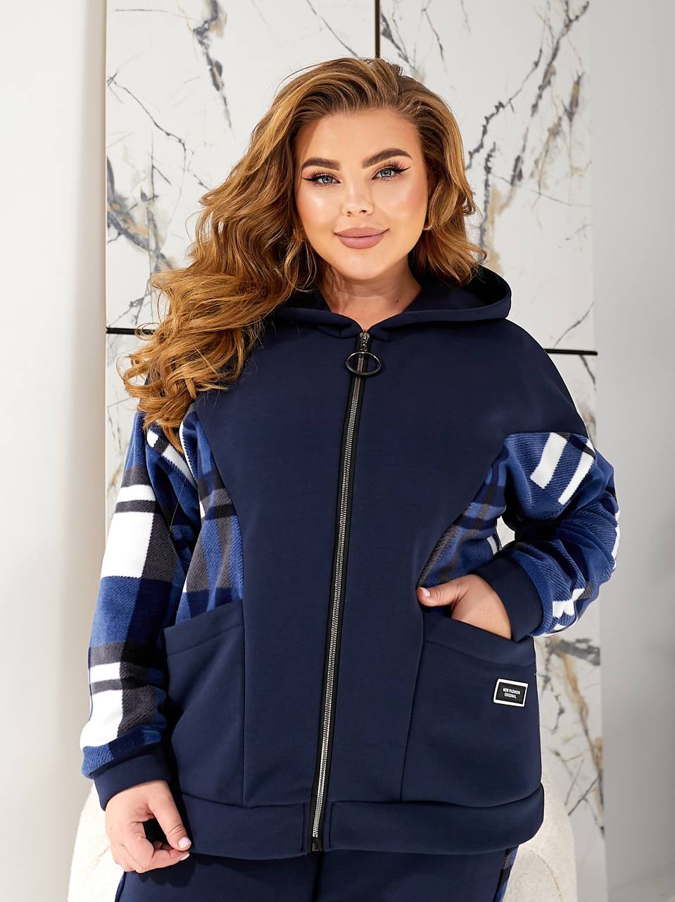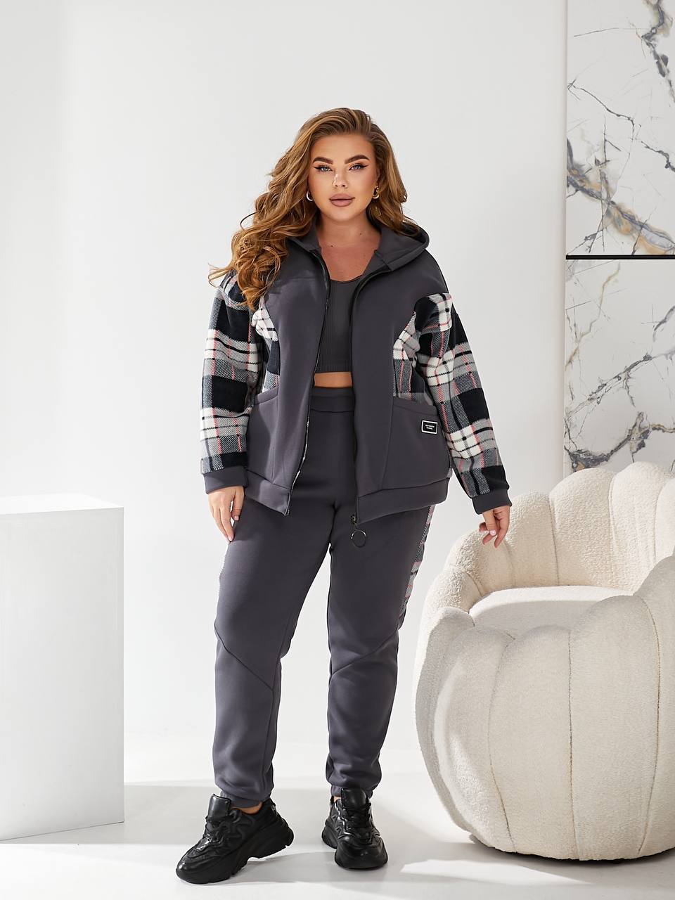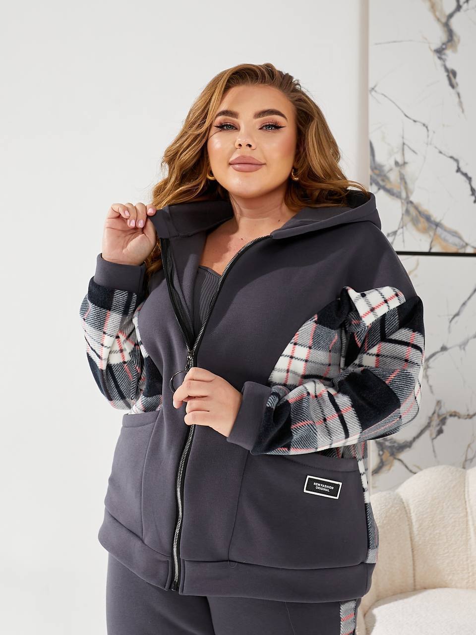 - Ткань: трехнитка на флисе + флис (клеточка)