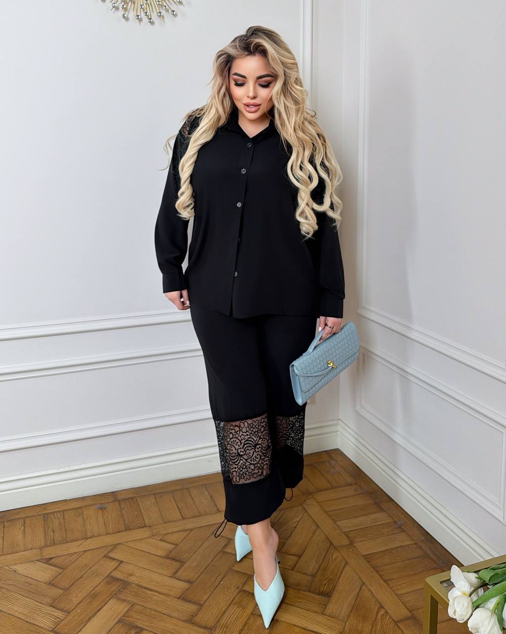 - Костюм с кружевными вставками