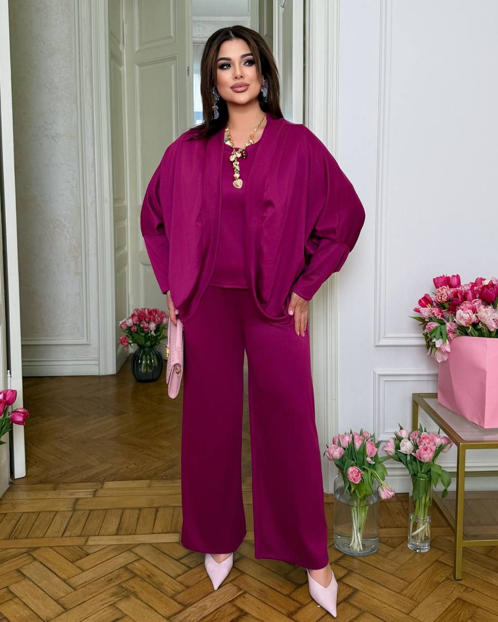 - Костюм тройка кардиган, футболка и брюки