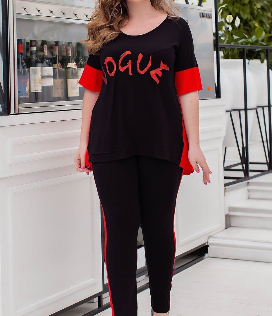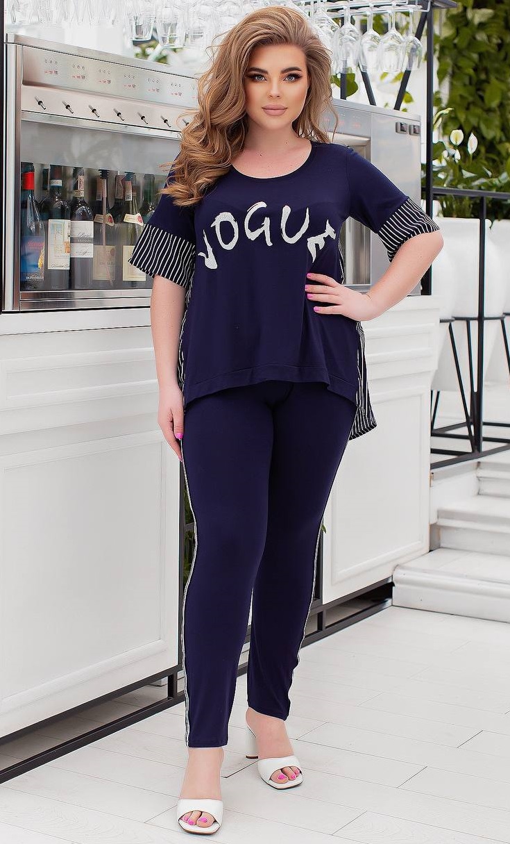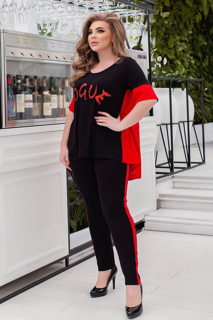 - Ткань брюки трикотаж вискоза с лампасами. Кофта комбинированная: вискоза трикотаж + спинка из летнего софта. Буквы серебро