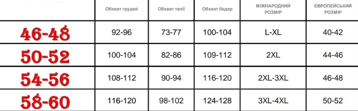 - Размеры: 46-48; 50-52; 54-56; 58-60