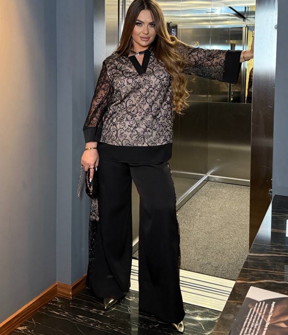 - Ткань: креп-костюмка+сетка флок блеск+трикотажный подклад