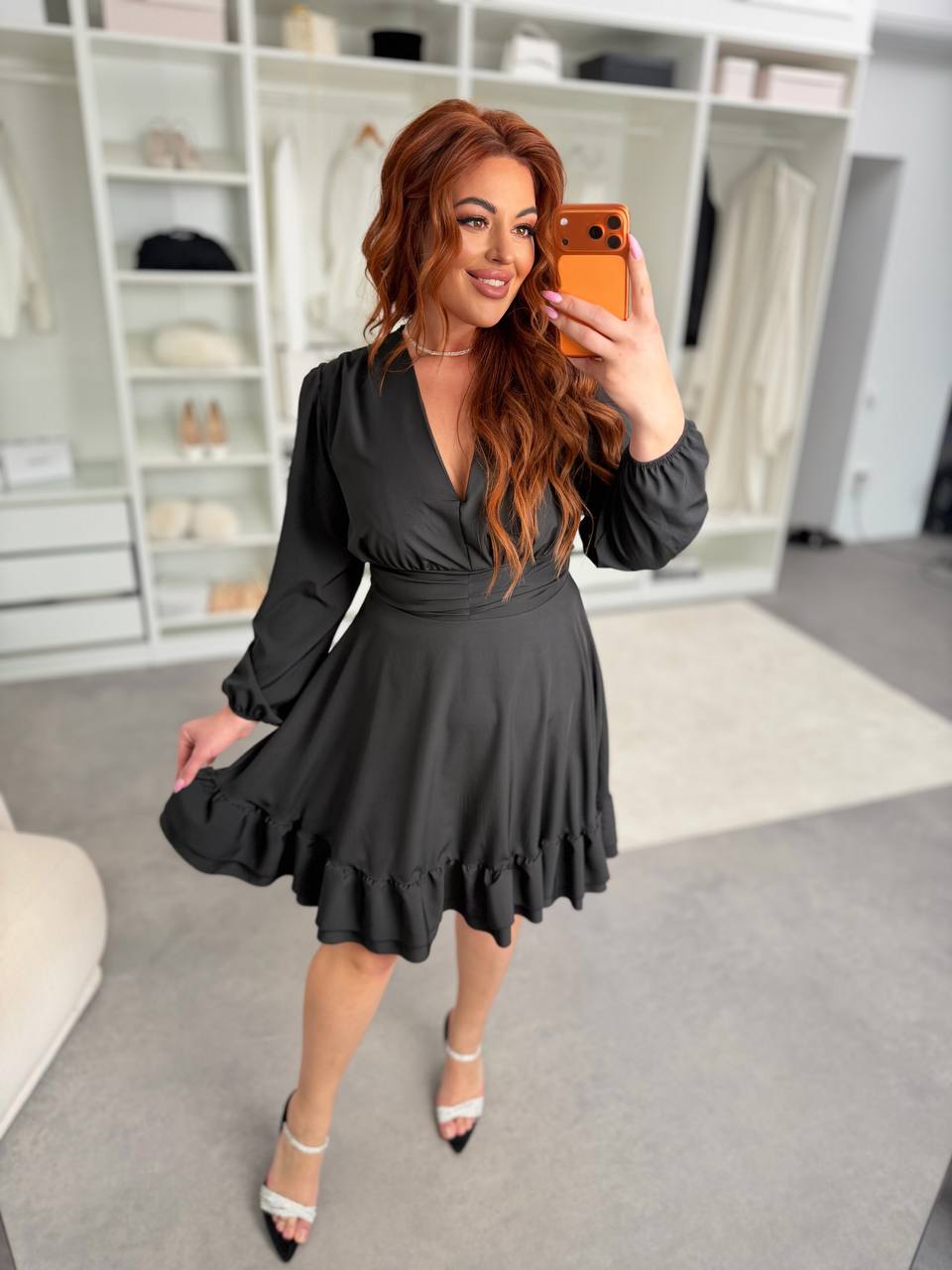 - Однотонное платье