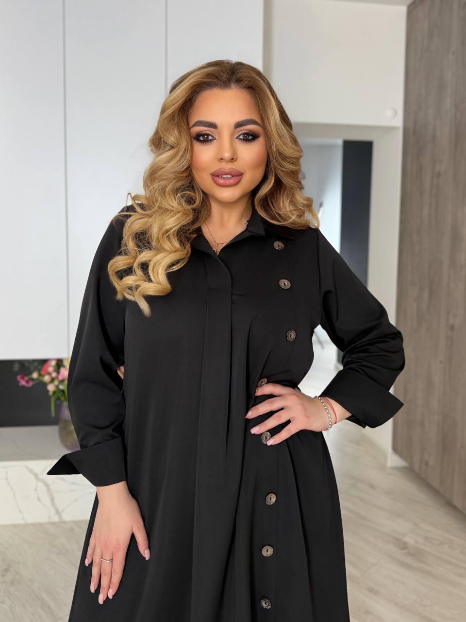- Параметры модели – норма ОГ96, ОТ74, ОБ104, рост 170см, на ней размер 46-48