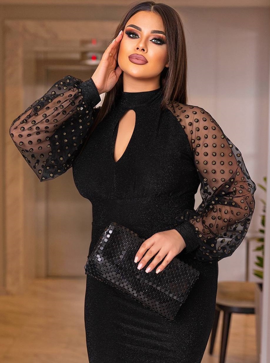 - Ткань: люрекс, сетка горох с глиттером