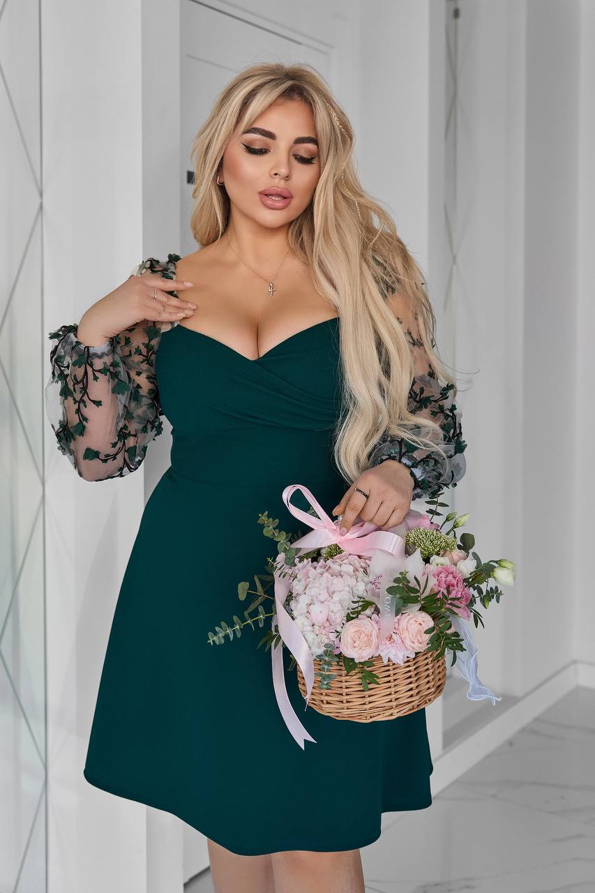- Платье с прозрачными рукавами