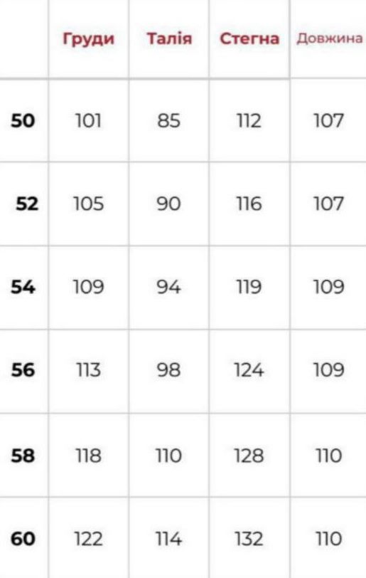 - Размеры: 50, 52, 54, 56, 58, 60