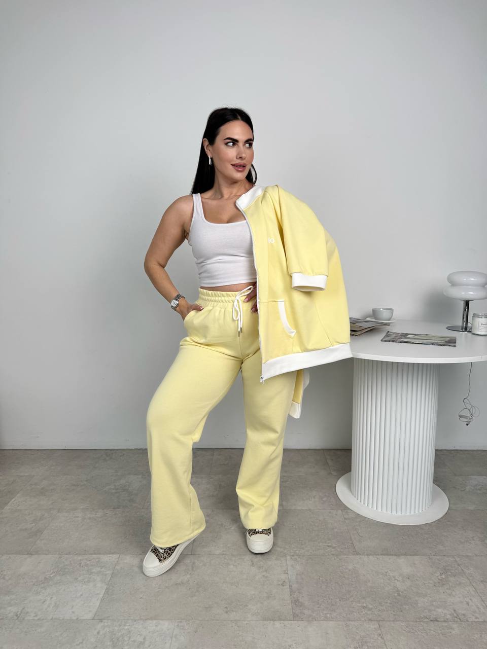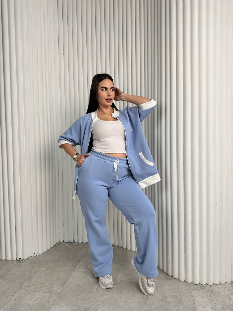 - Брюки прямые и имеют фиксаторы