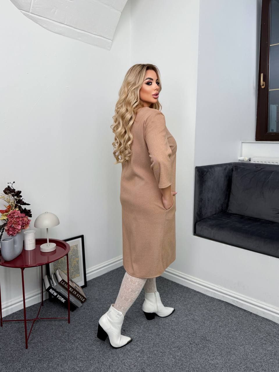 - Шерстяное приталенное платье
