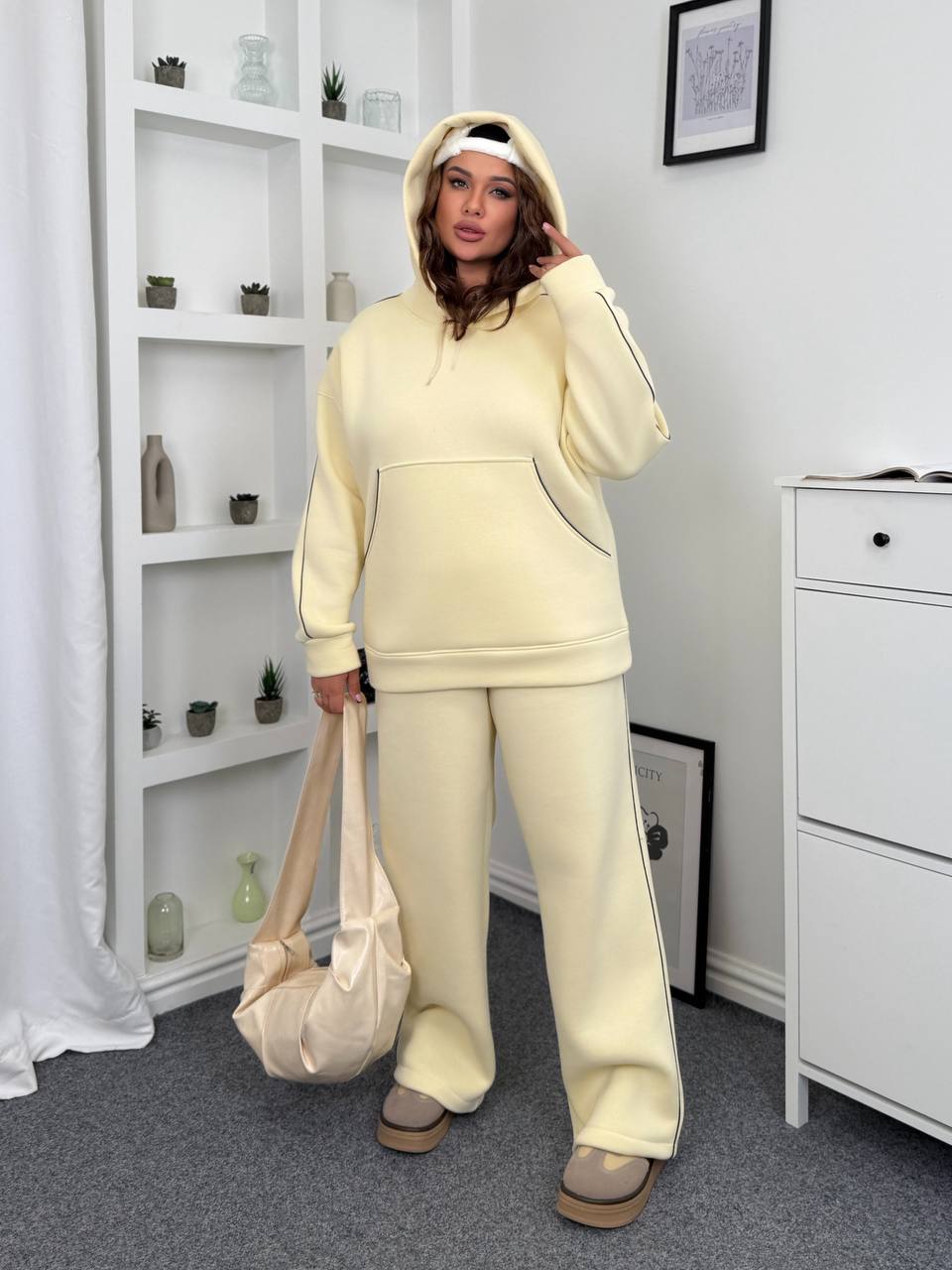 - Кофта кенгуру с капюшоном. Штанишки палаццо, низ регулируется регуляторами. Швы обработаны х / б кантом