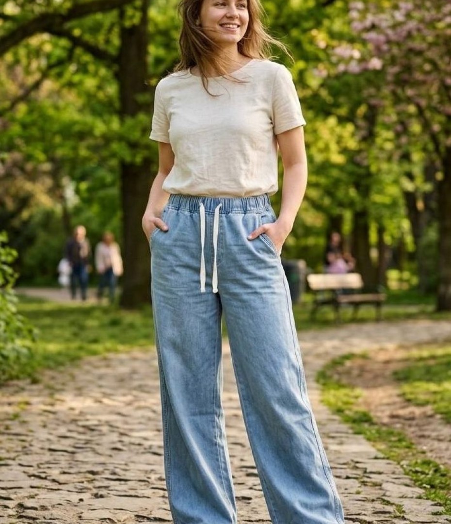 - Свободные джинсы прямого кроя