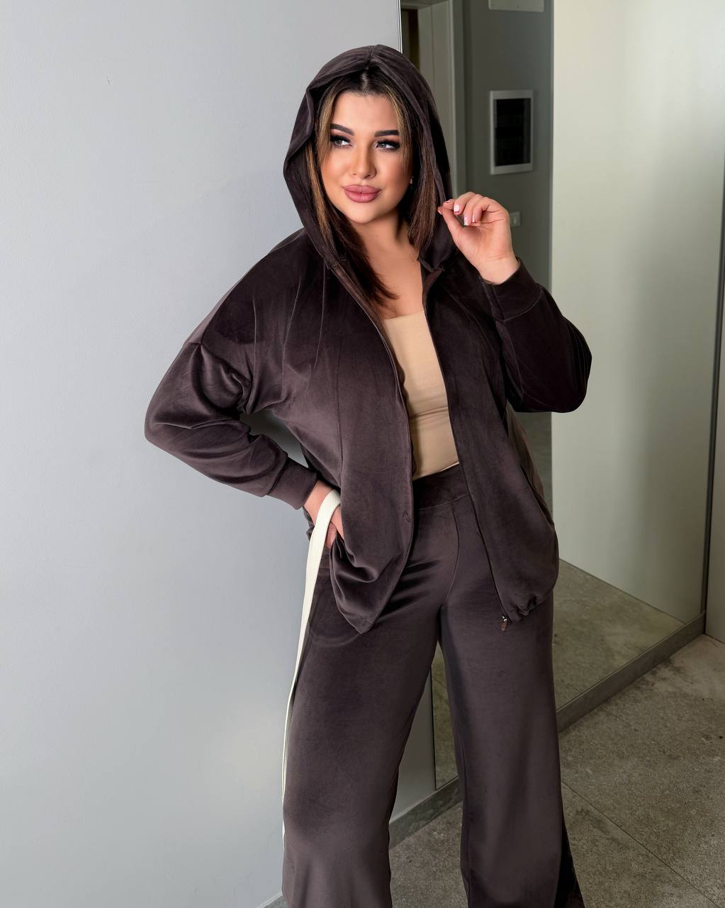 - Трендовый костюм из велюра
