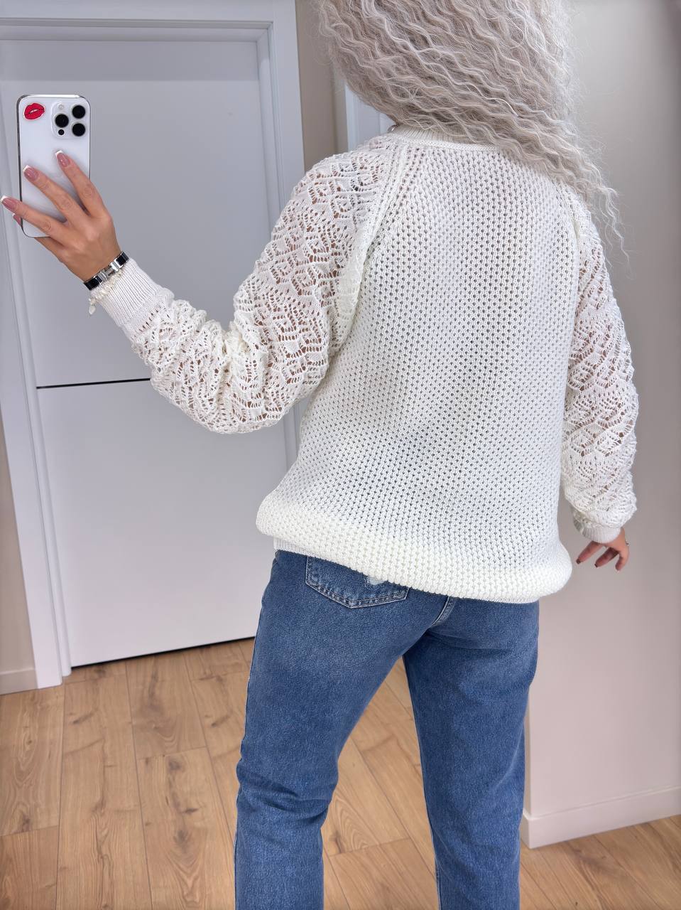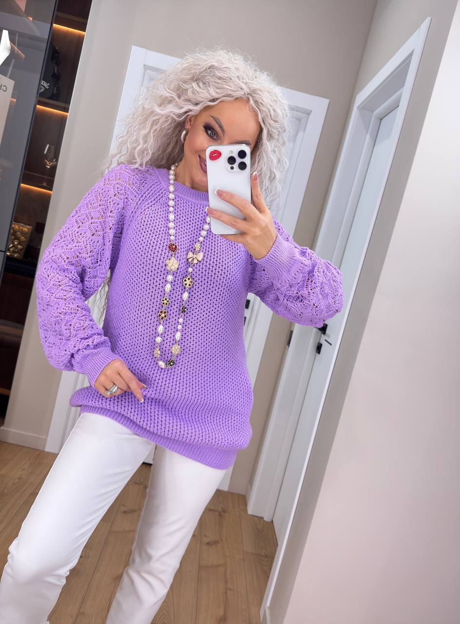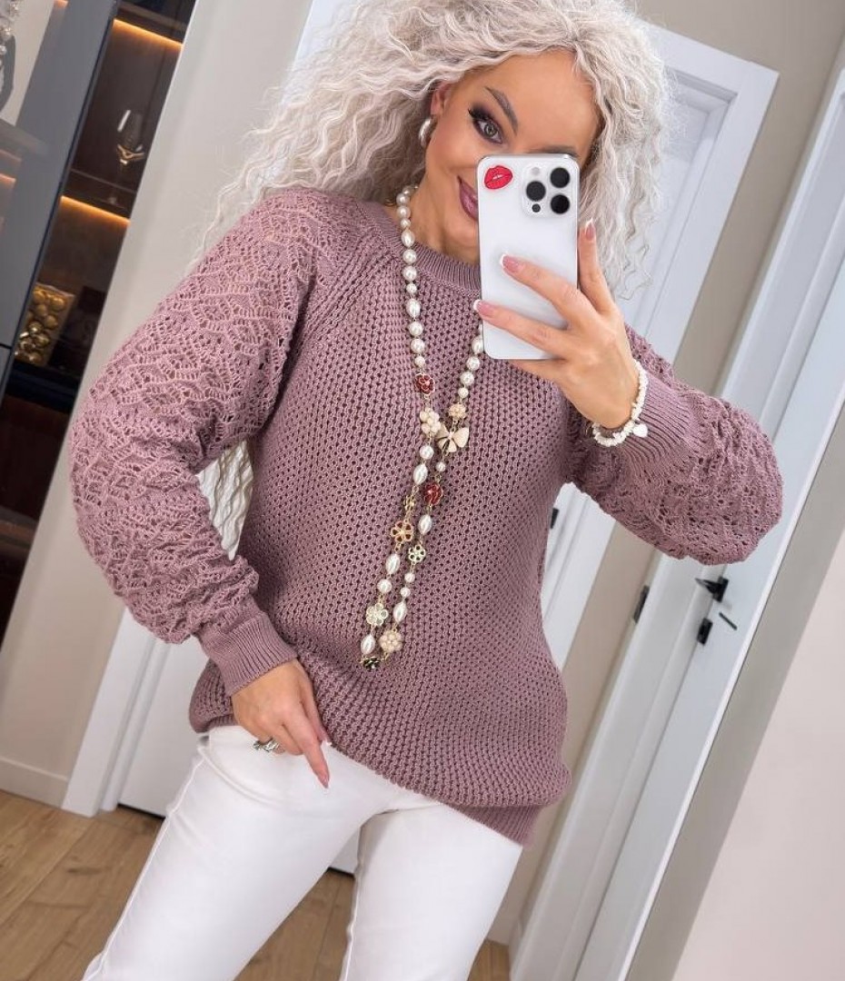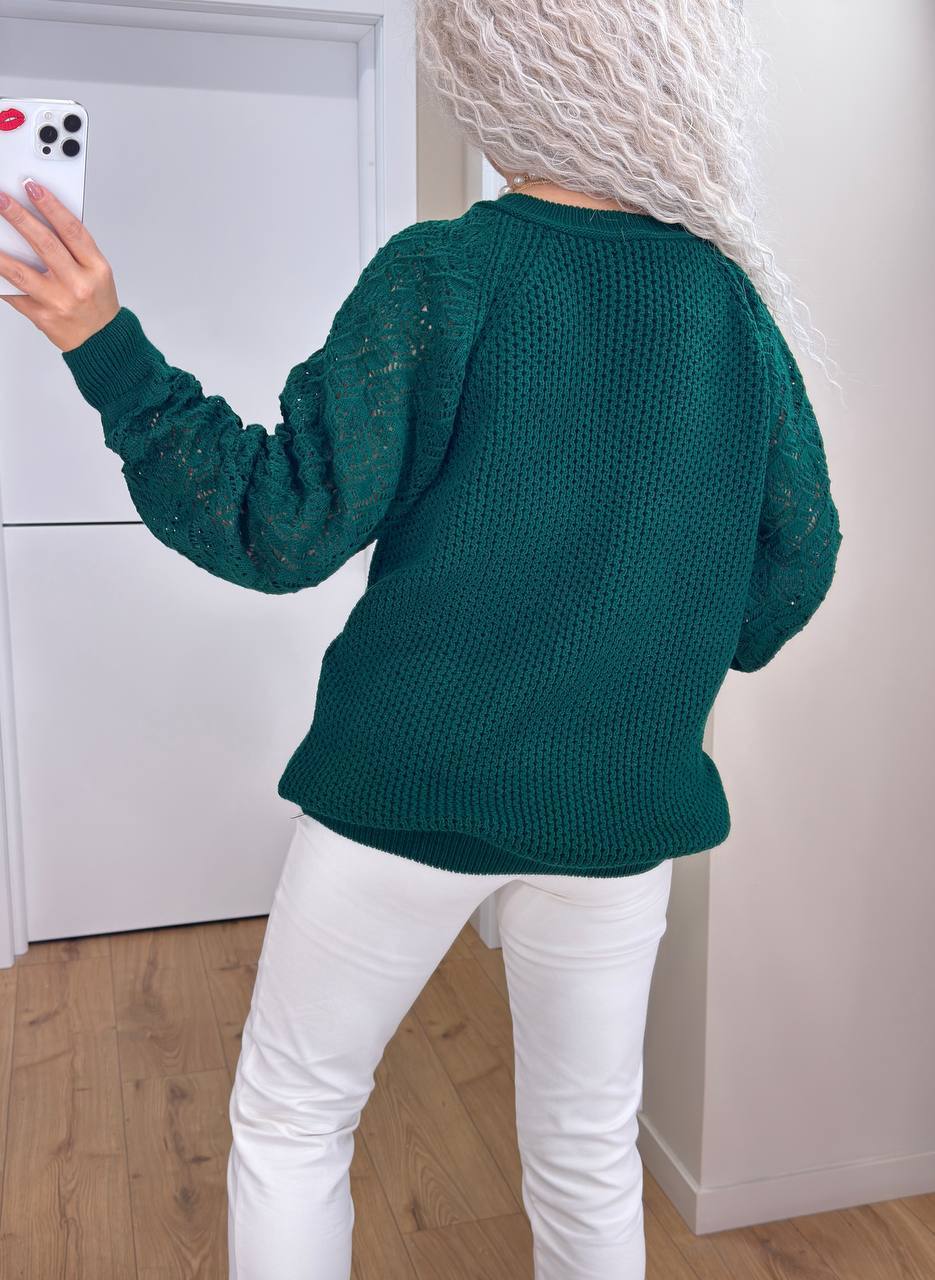 - Женский свитер с ажурными рукавами
