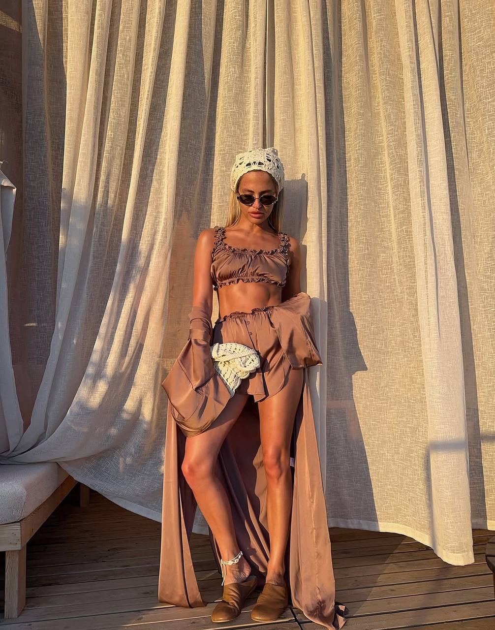 - Домашний комплект халат, шорты+топ