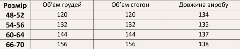 | EU | UA | Грудь | Талия | Бедра | |
