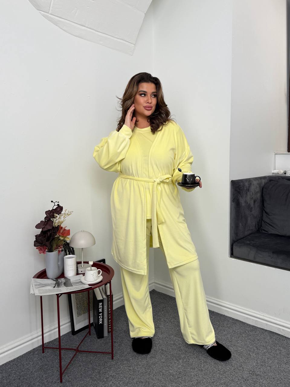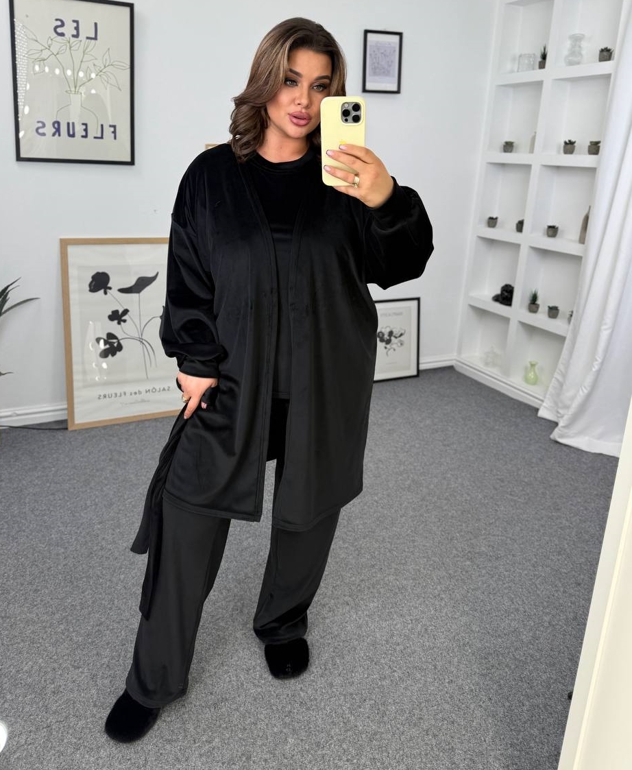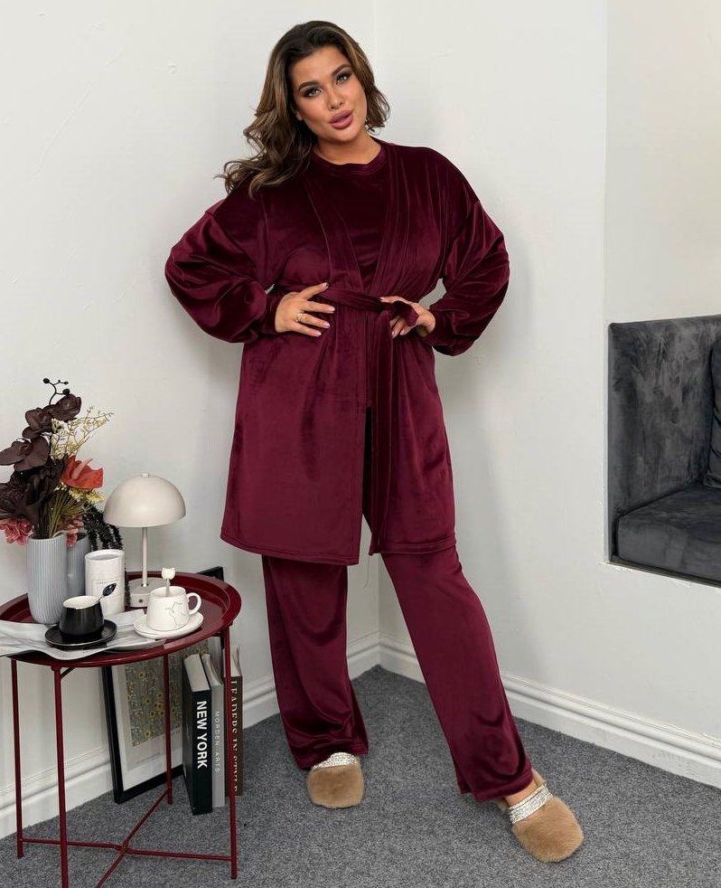 - Костюм тройка (футболка, брюки, халат)