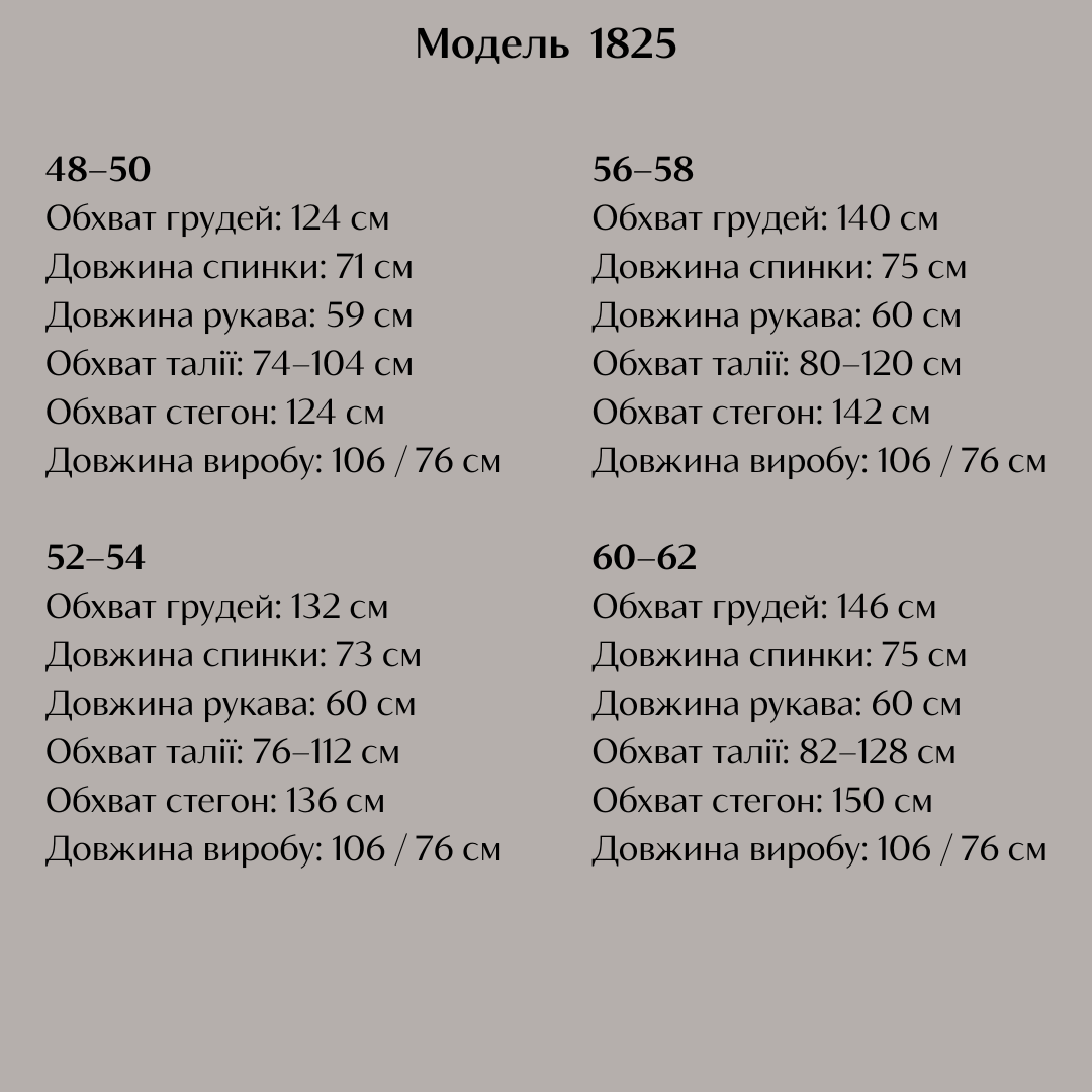 - Размеры: 48-50; 52-54; 56-58; 60-62