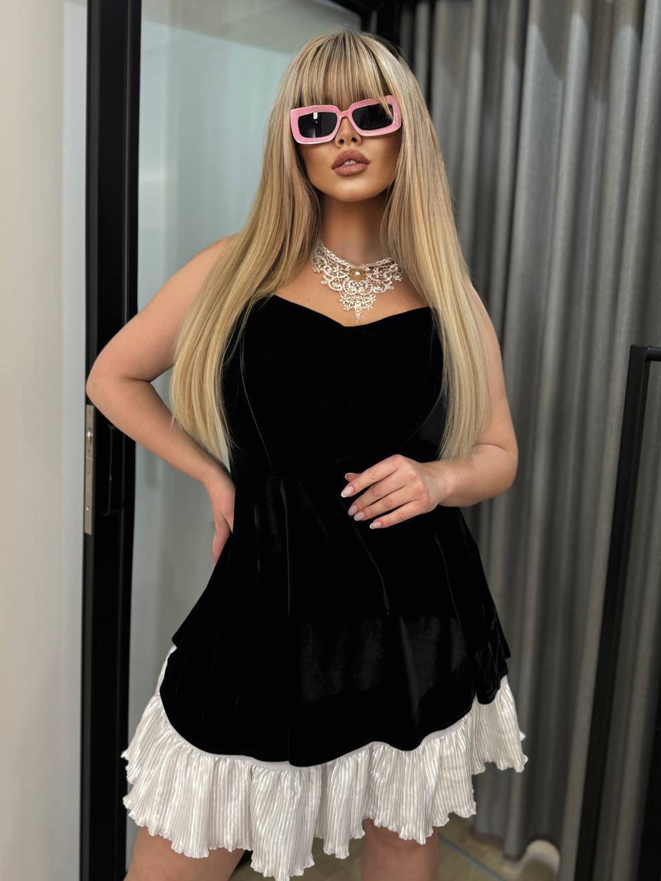 - Бархатное платье со съемной юбкой