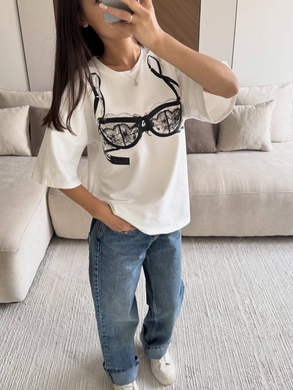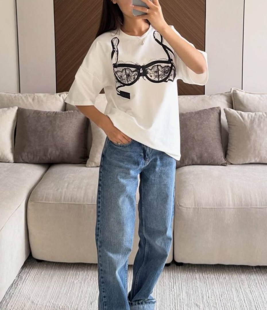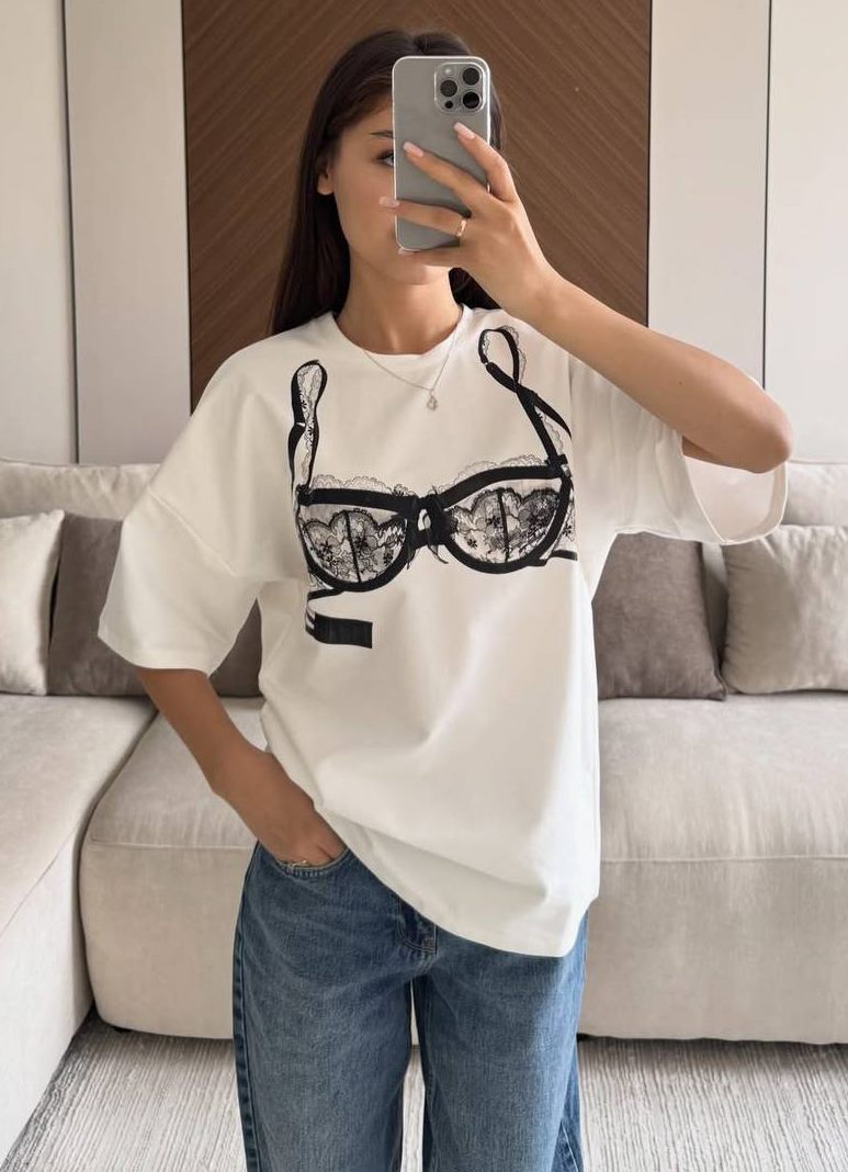 - Белая футболка с модным принтом