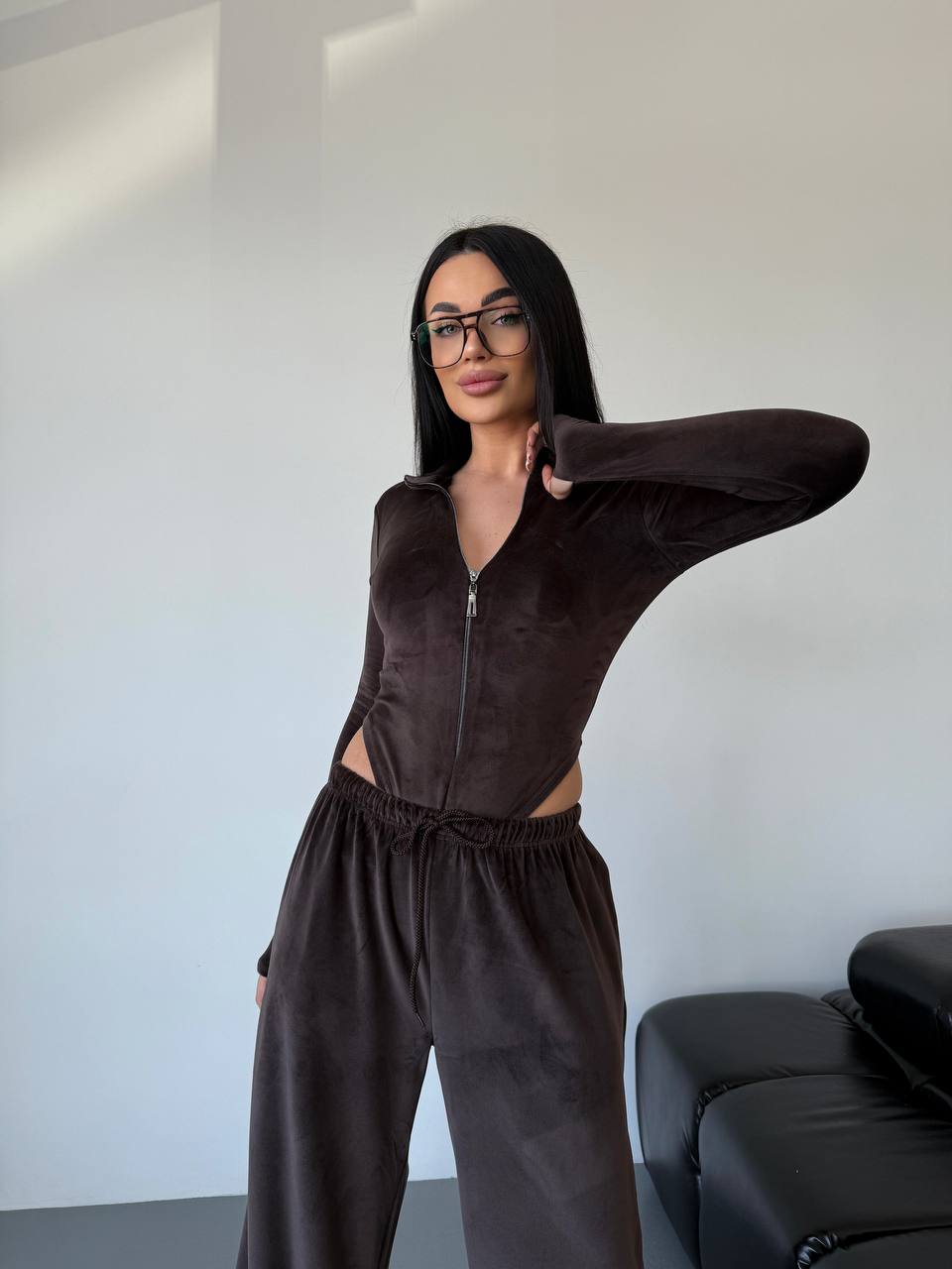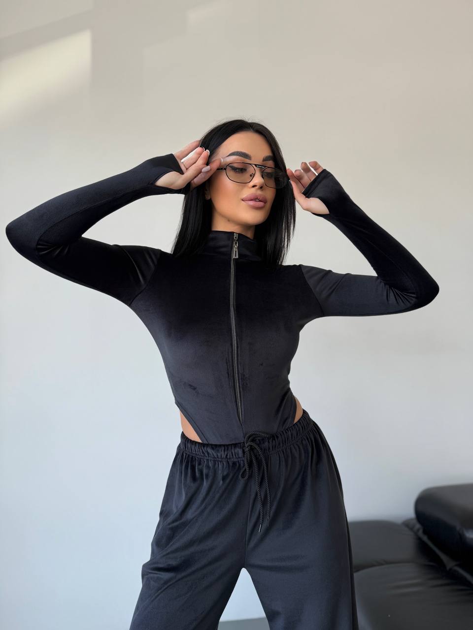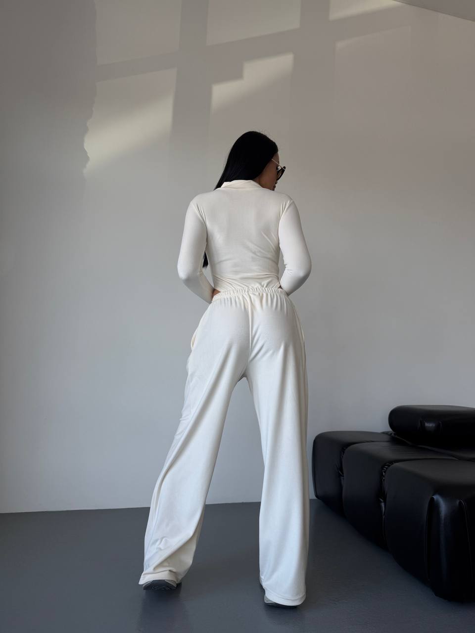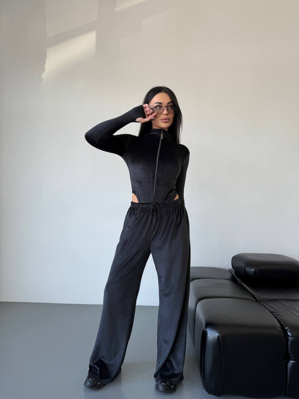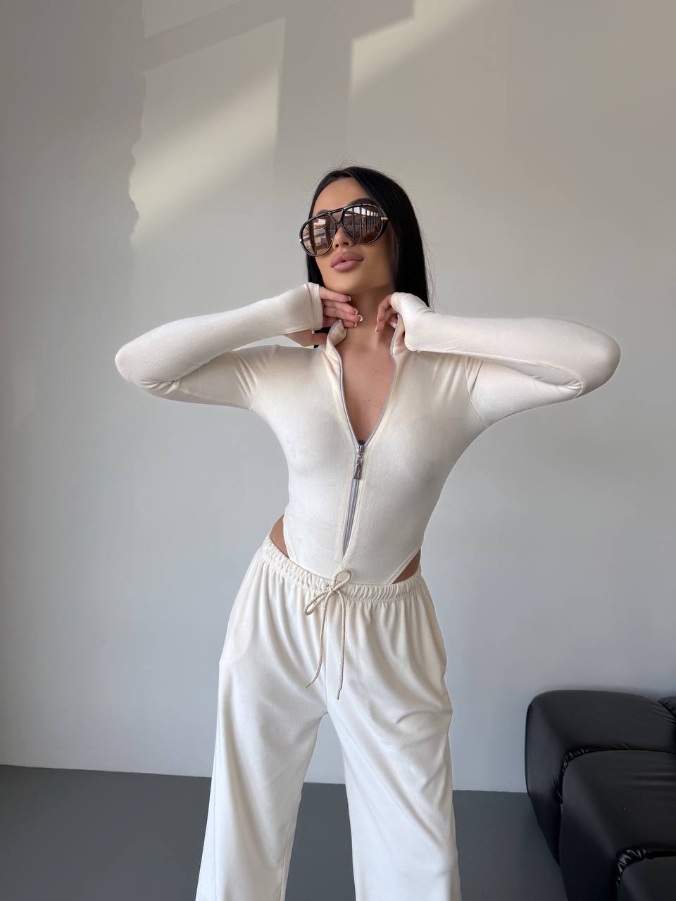 - Боди на молнии + свободные штаны