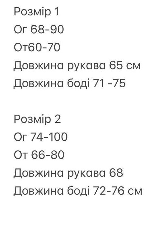 | EU | UA | Грудь | Талия | Бедра | |