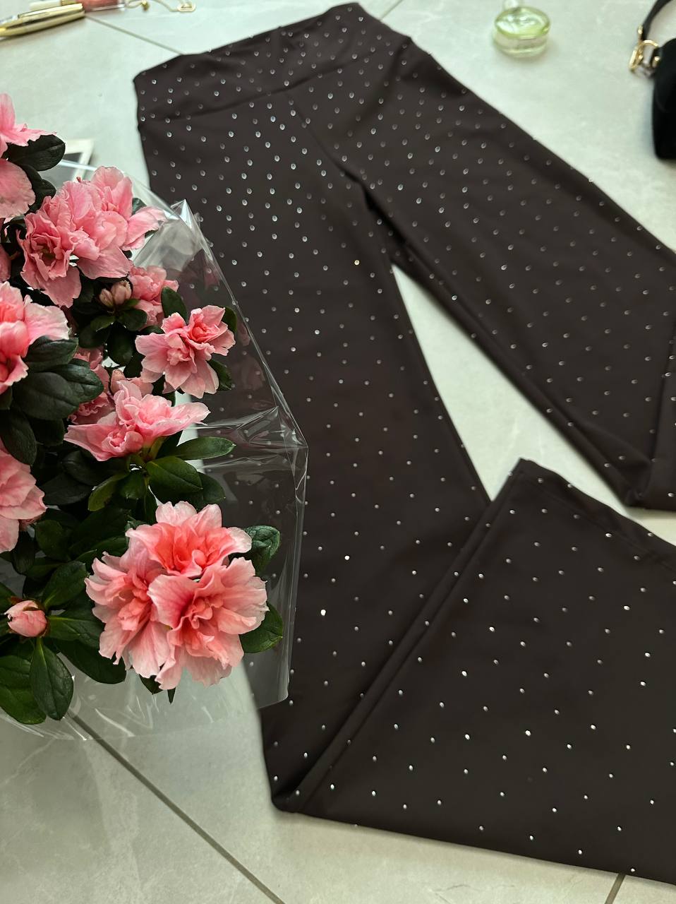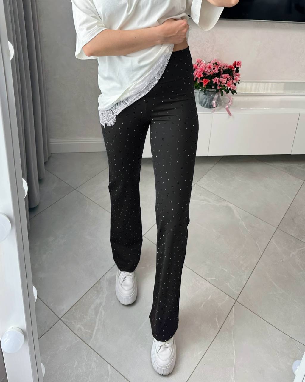 - Брюки в обтяжку со стразами