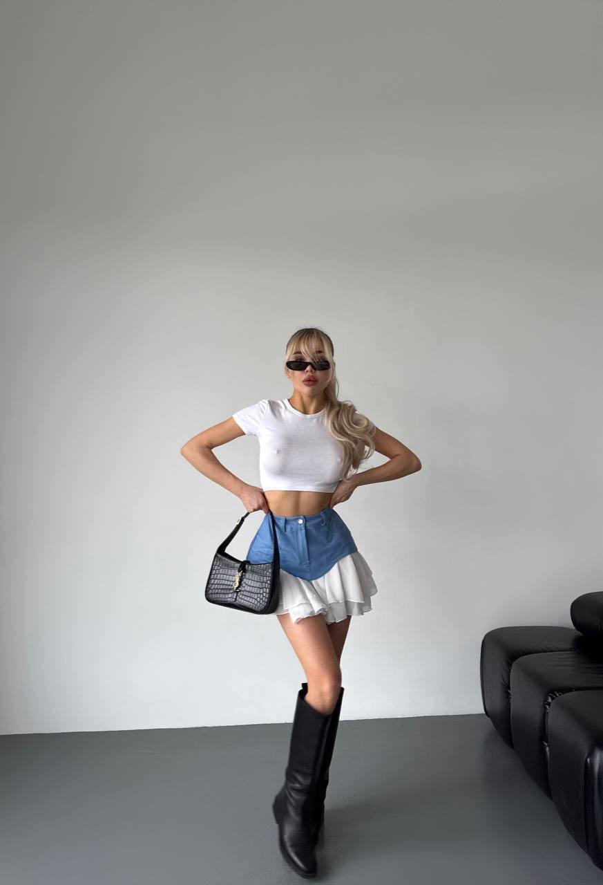 - Ткань: верх-плотный джинс турецкий, воланы-креп шифон
