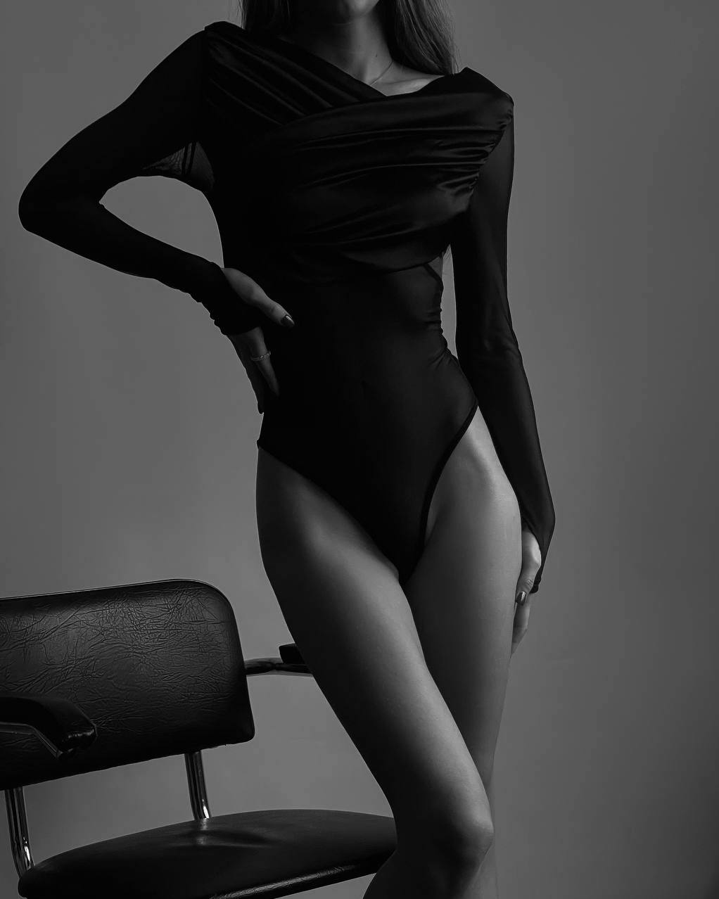 - Эффектное боди с драпировкой на груди