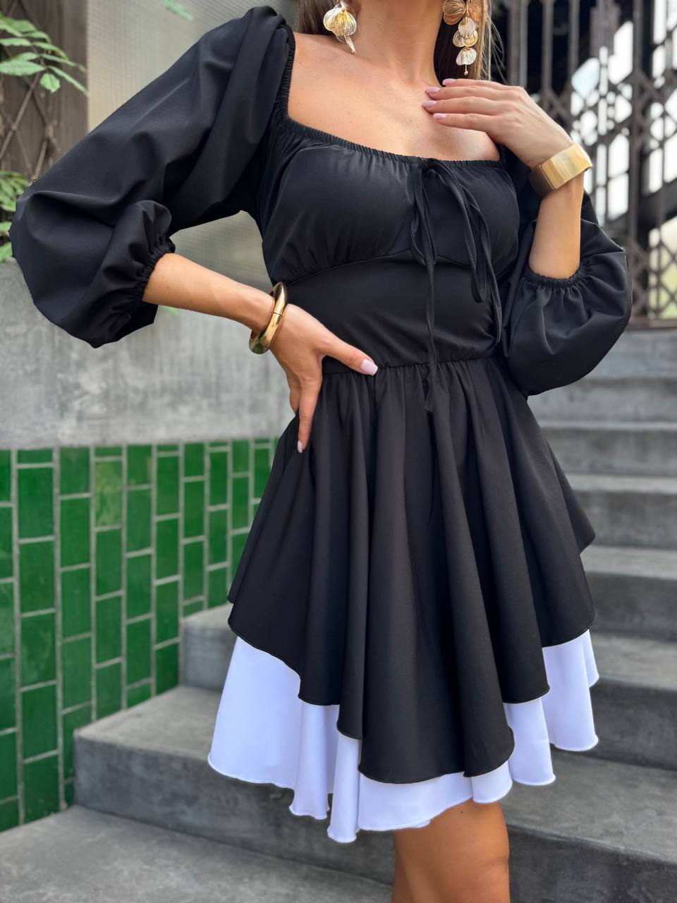 - Элегантное платье с длинным рукавом