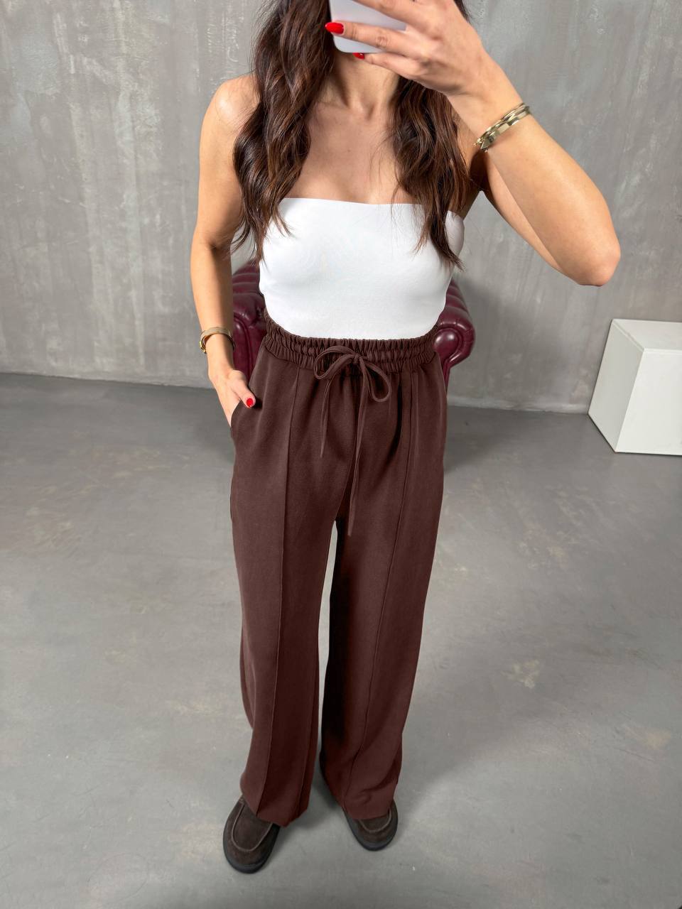 - Брюки со стрелками свободного кроя