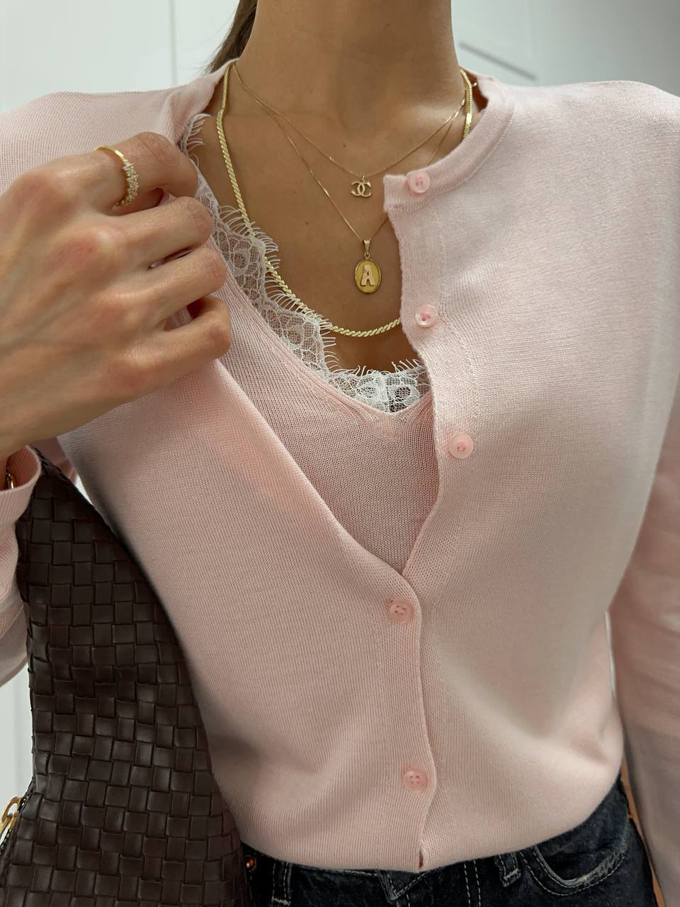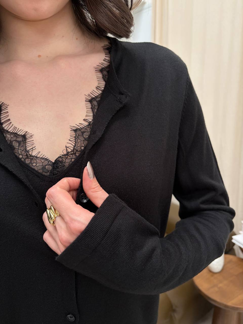 - Ткань: тонкая машинная вязка+кружево