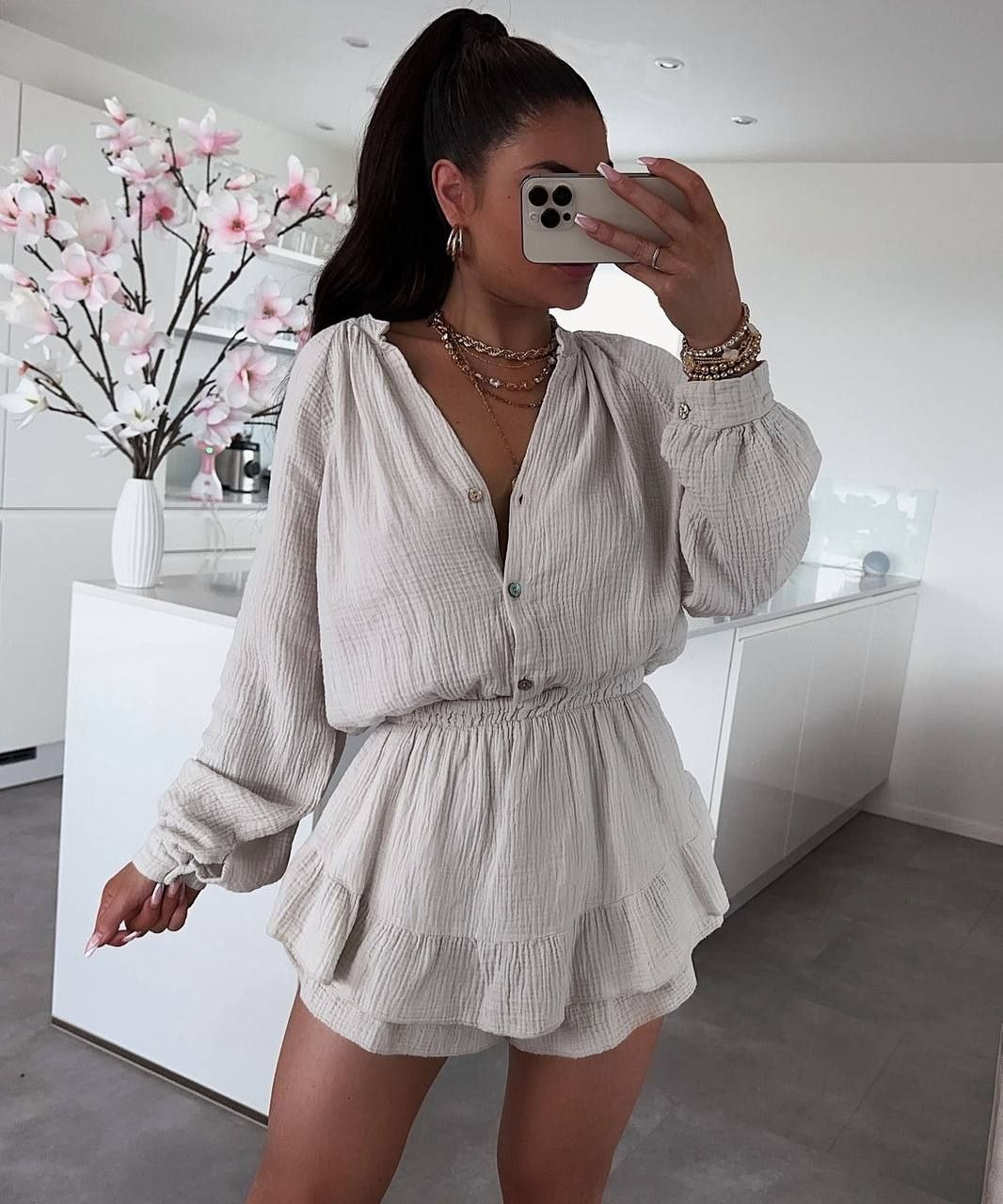 - Комплект рубашка+ юбка-шорты