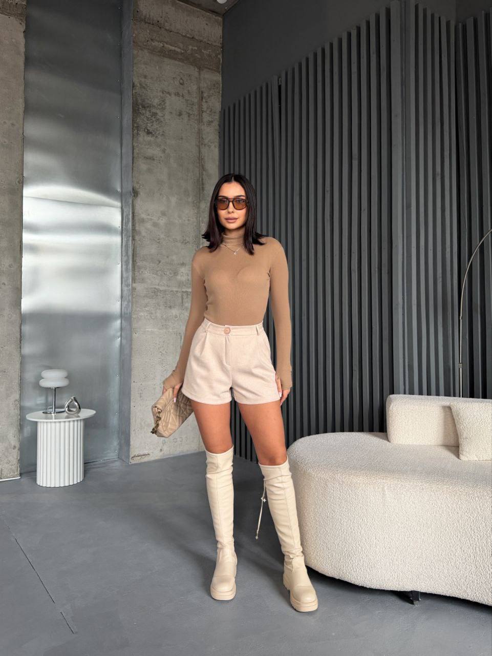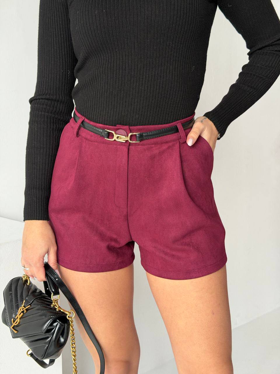 - Короткие замшевые шорты