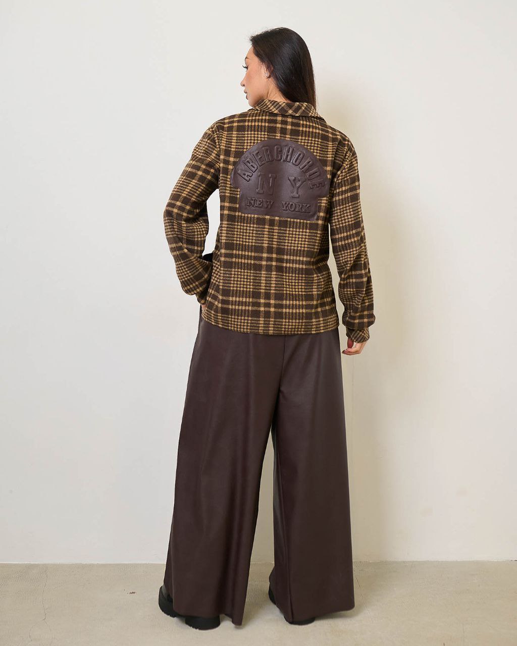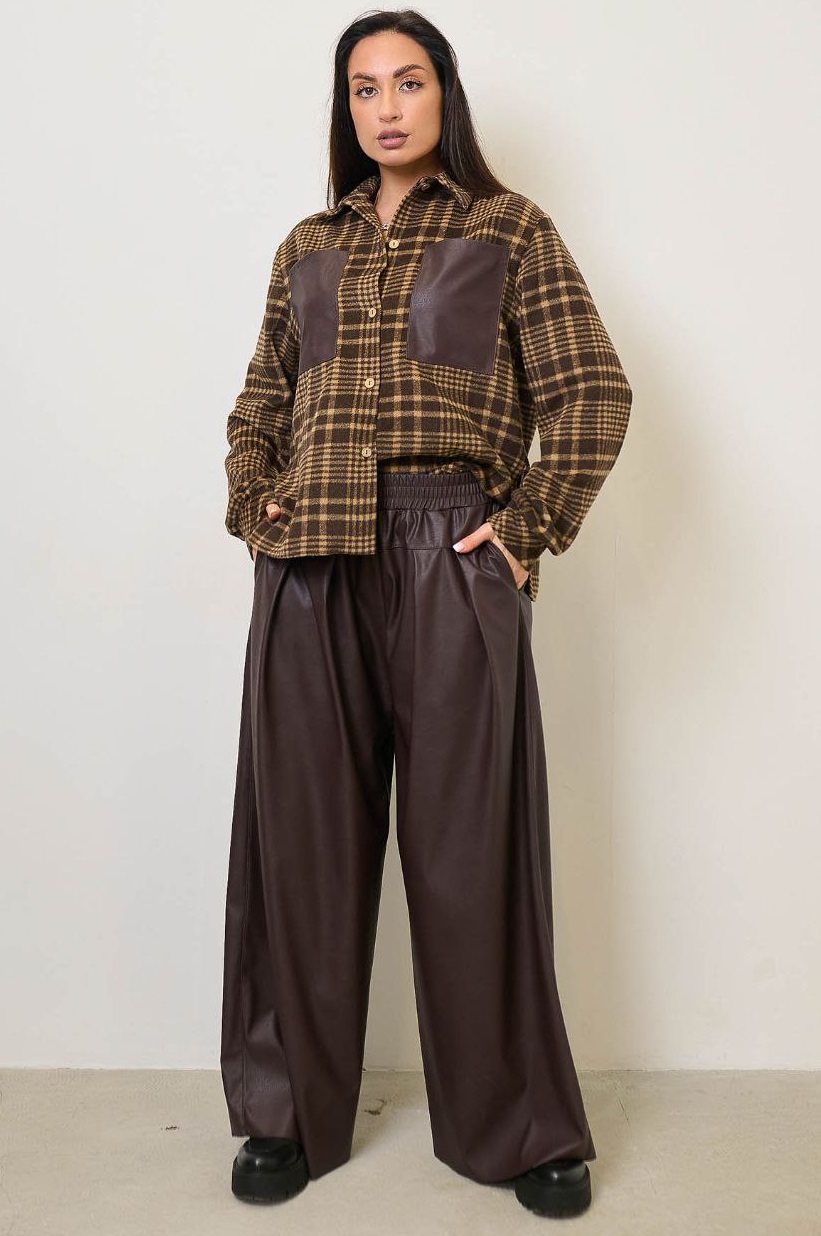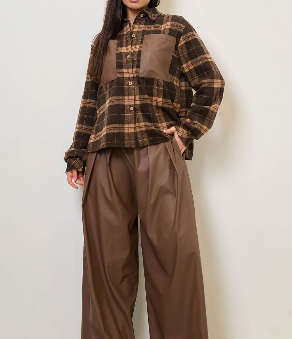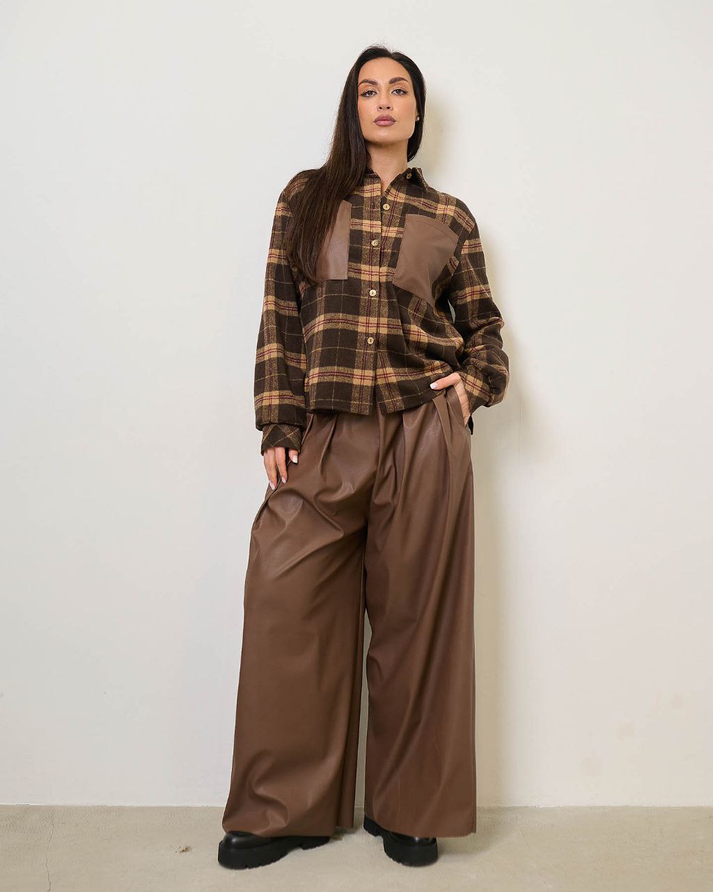 - Ткань: рубашка кашемир (теплая и приятная на ощупь) + брюки палаццо из эко кожи.