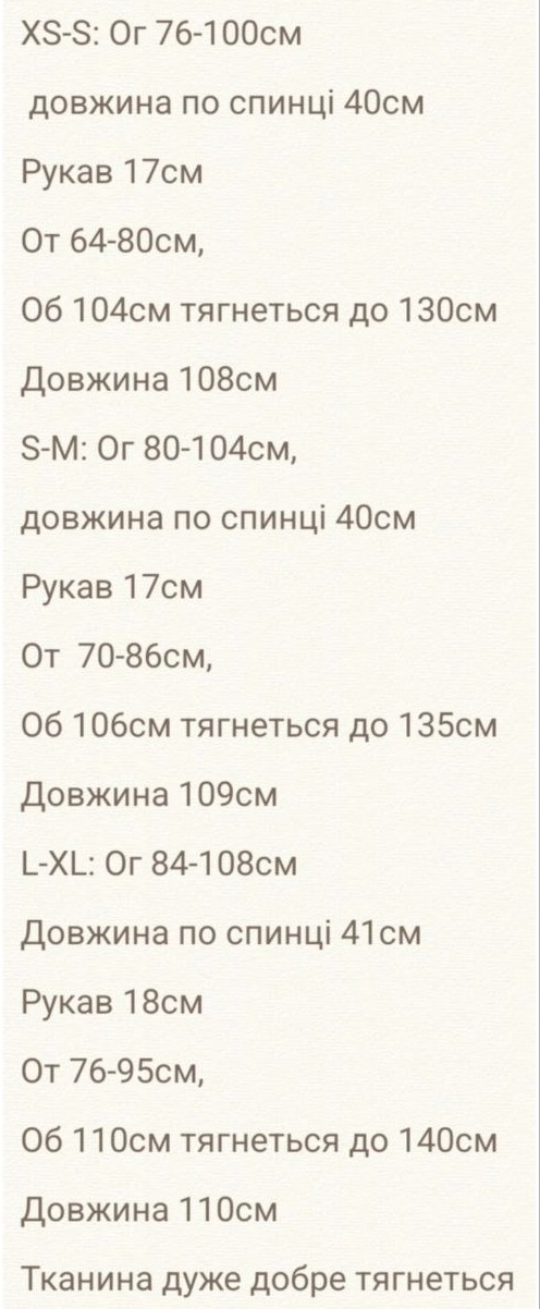 - Размеры: XS-S (40-42), S-M (42-44), L-XL (46-48)