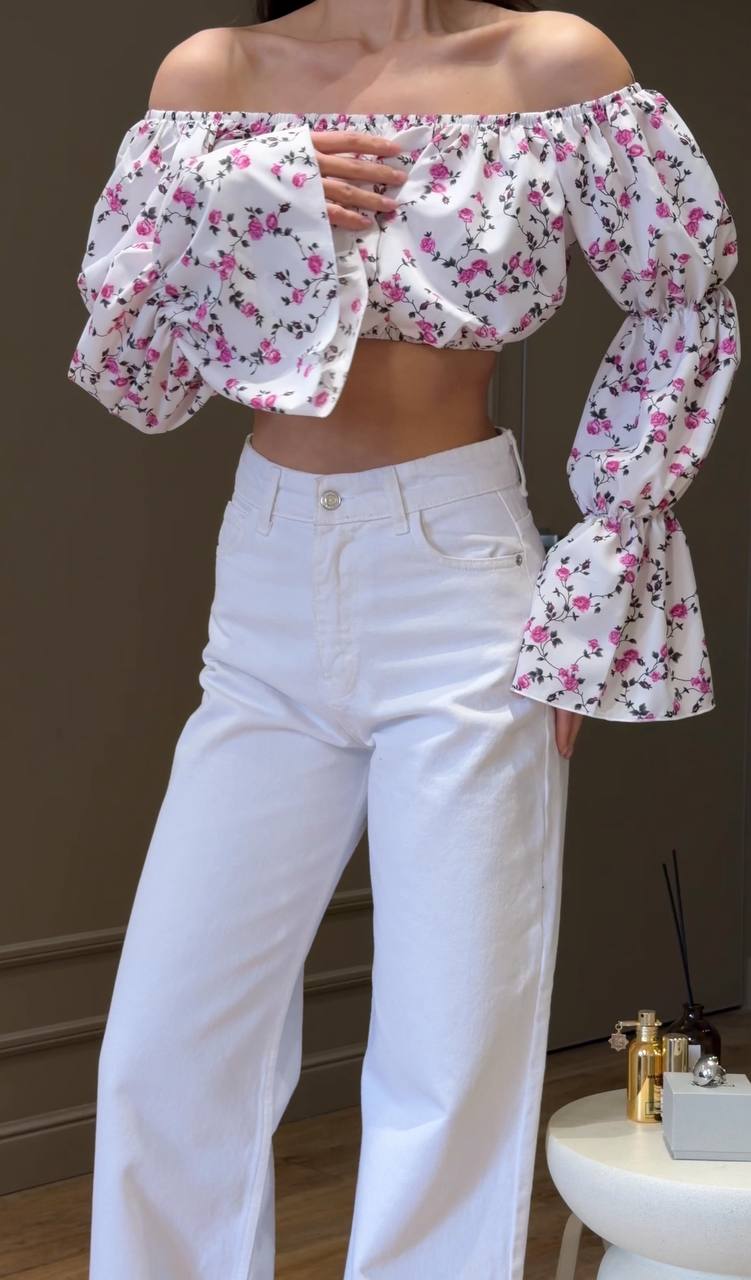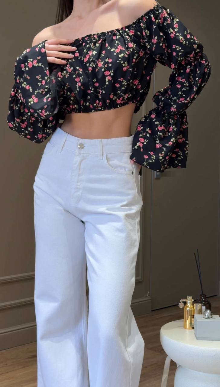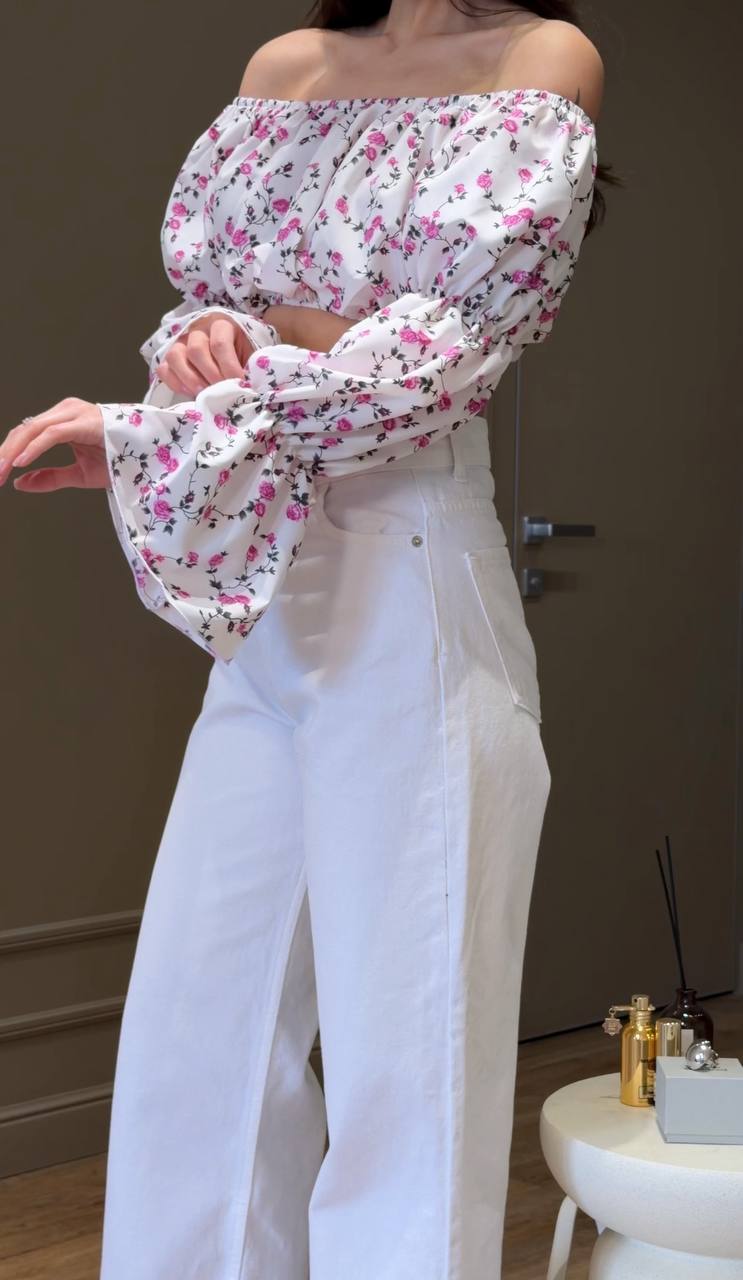 - Легкий кроп-топ с открытыми плечами