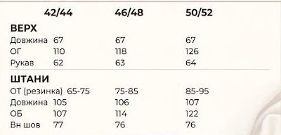 - Размеры: 42-44, 46-48, 50-52