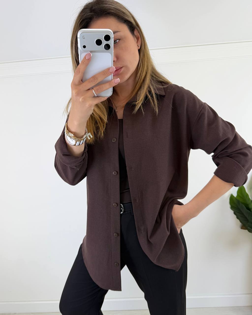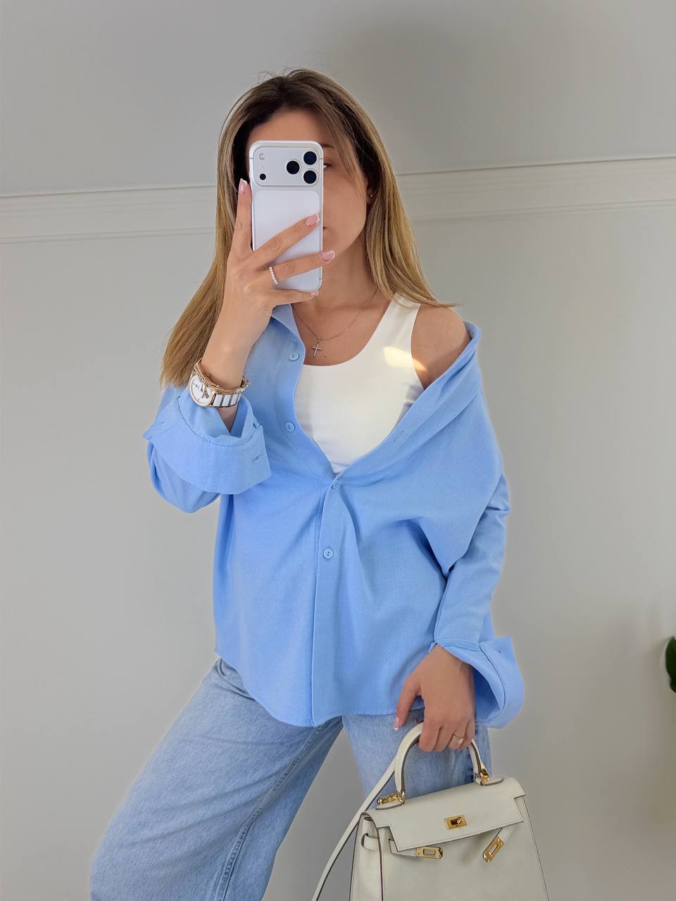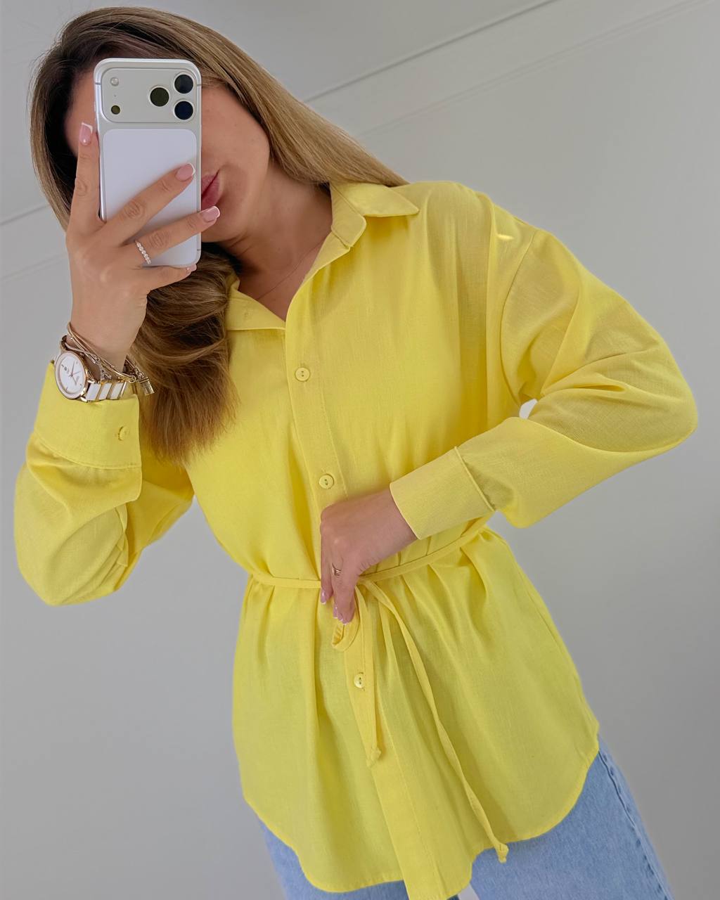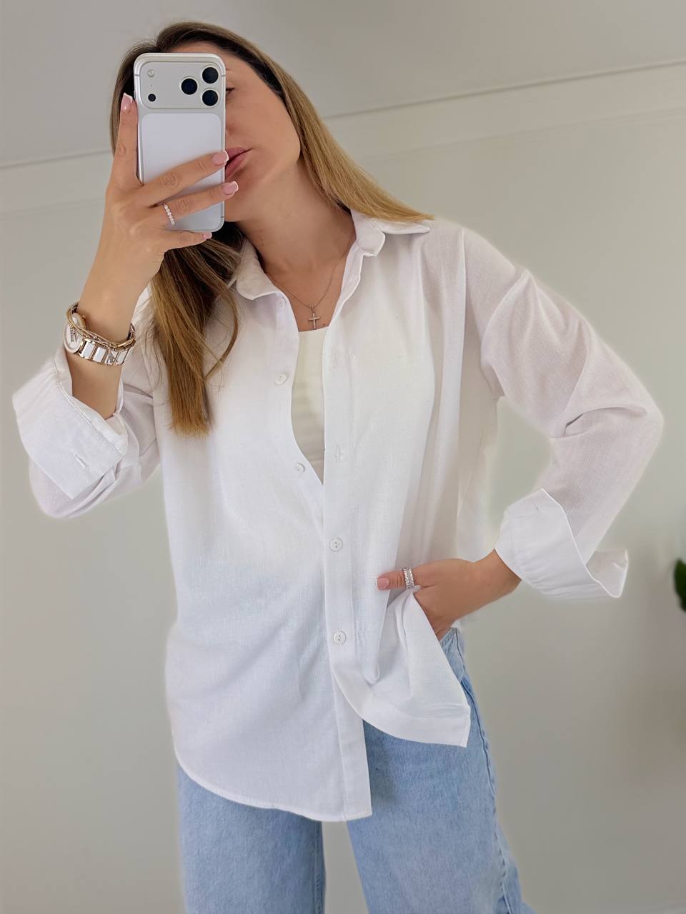 - Льняная рубашка прямого кроя
