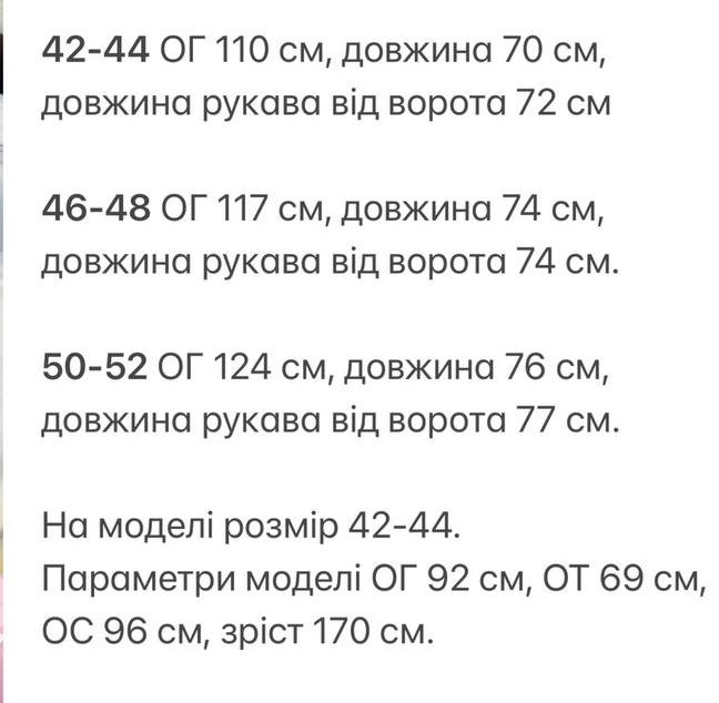 - Размеры: 42-44, 46-48, 50-52