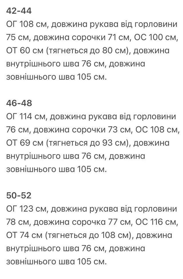| 4XL | 48 | 54 | 106-110 | 86-90 | 114-118 |