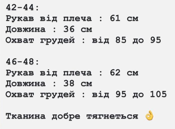 | 3XL | 46 | 52 | 102-106 | 82-86 | 110-114 |