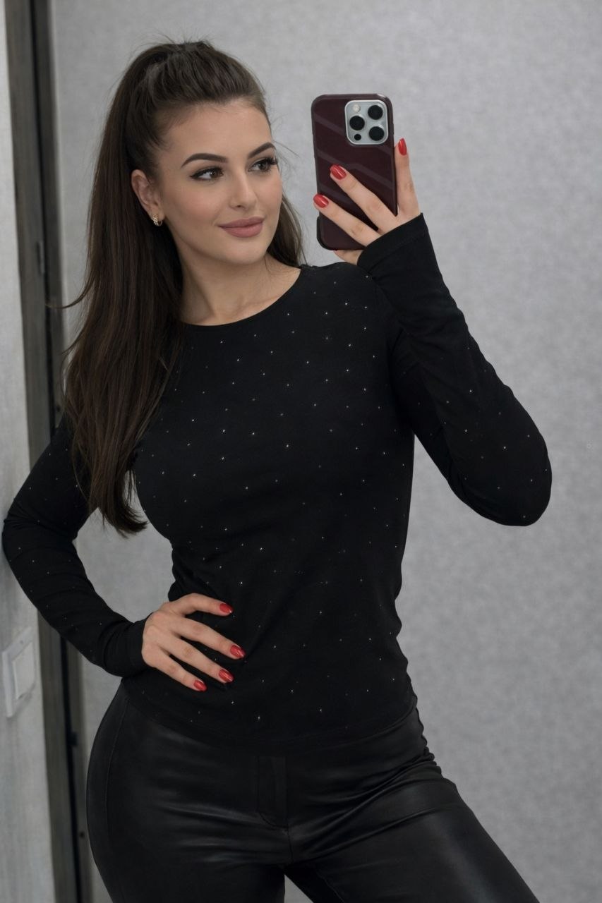 - Лонгслив приталенного кроя со стразами