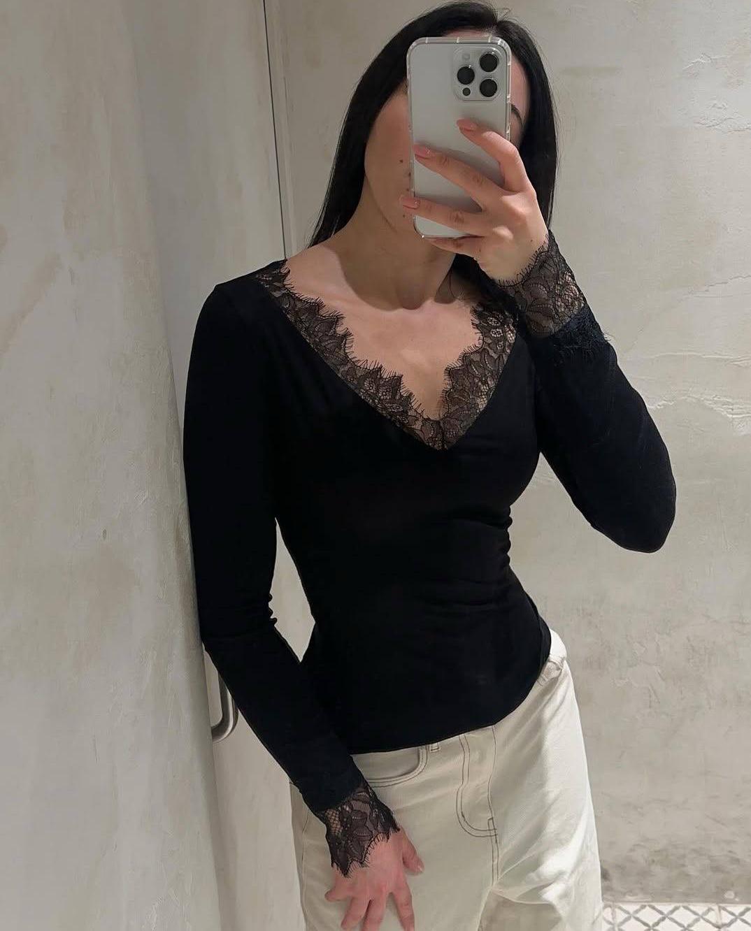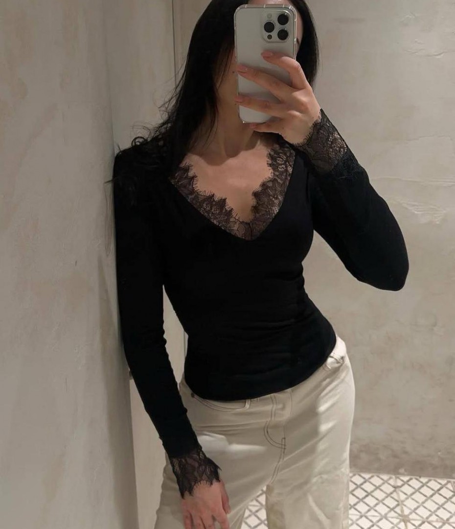 - Лонгслив с кружевом