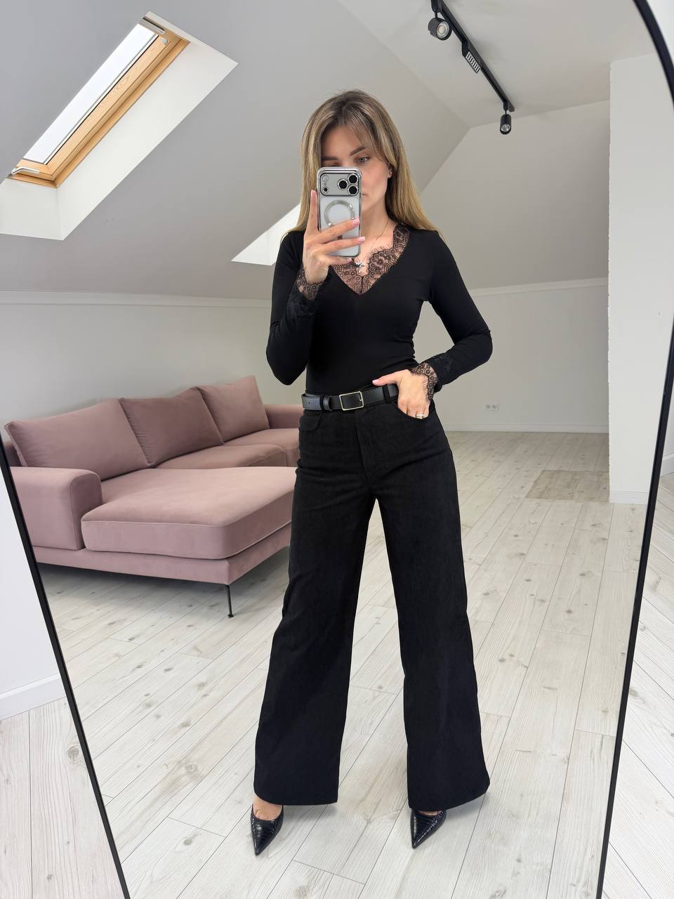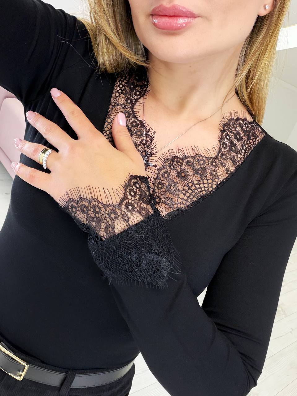 - Лонгслив украшенный кружевом