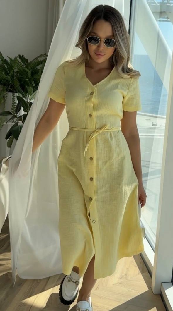 - Муслиновое платье на пуговицах