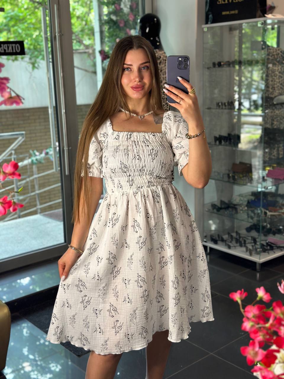 - Нежное платье с цветочным принтом