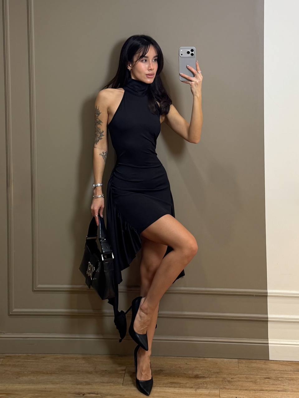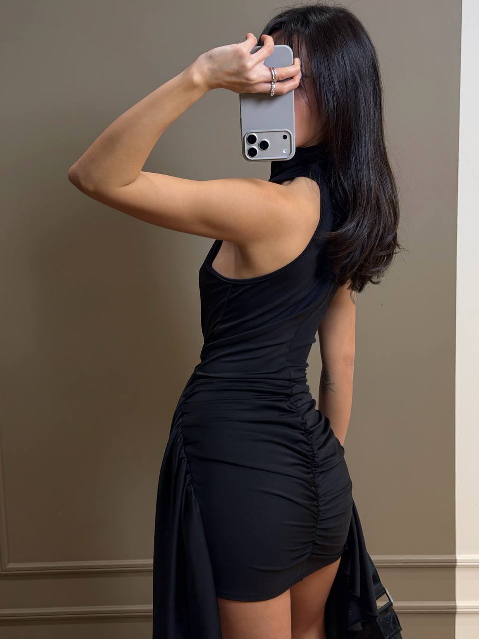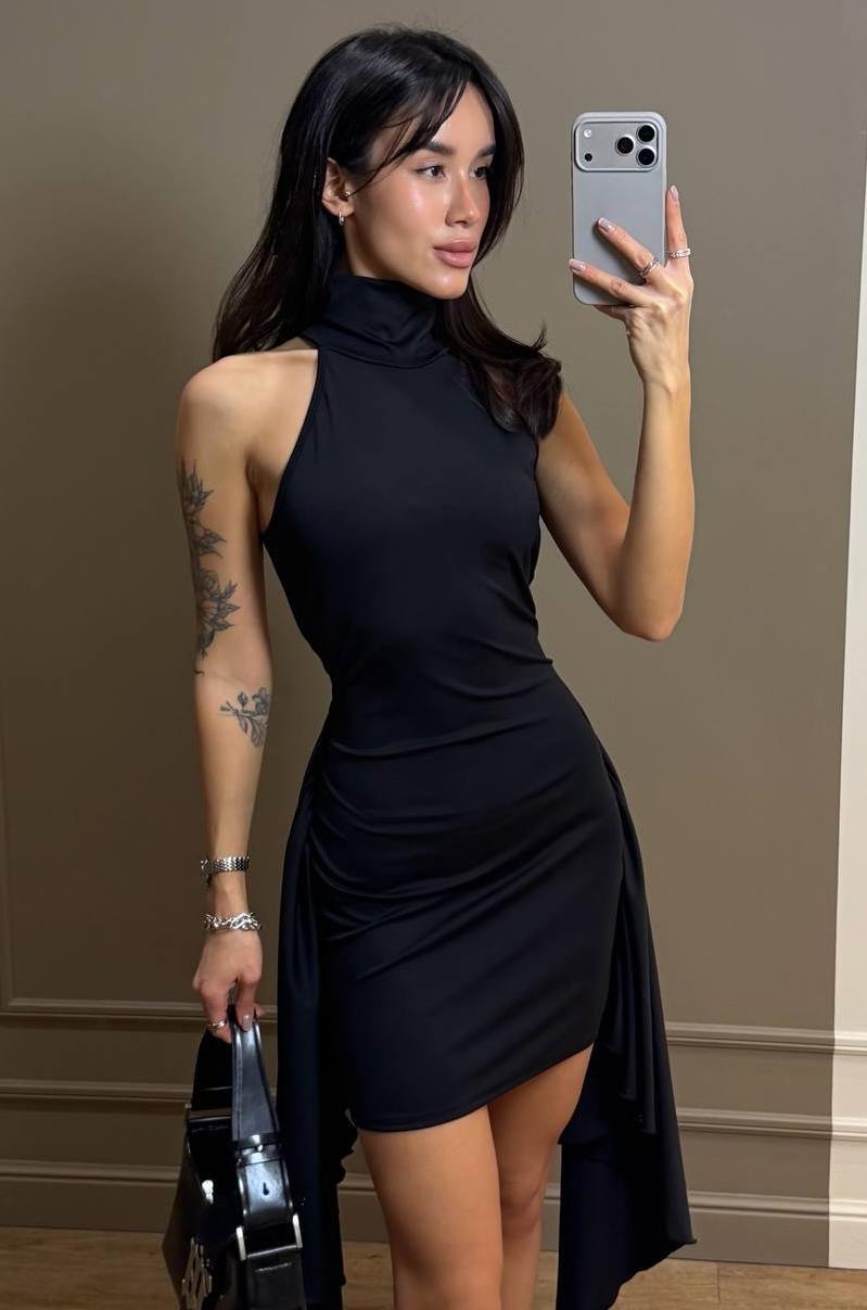 - Обтягивающее платье по бокам со шлейфами