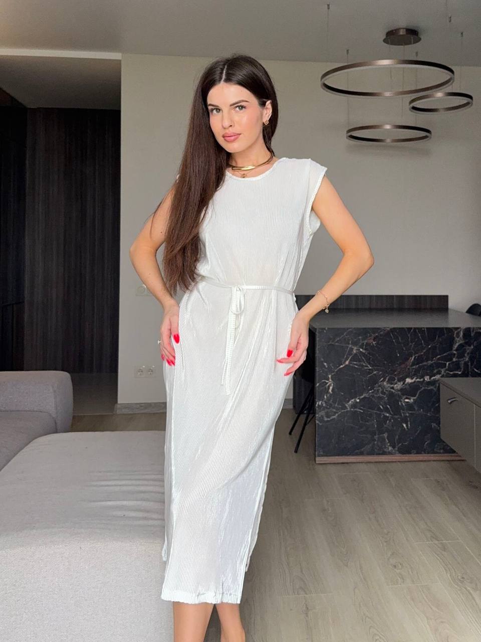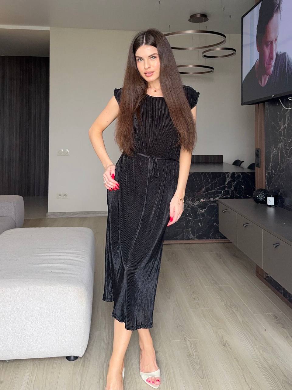- Платье плиссе под пояс