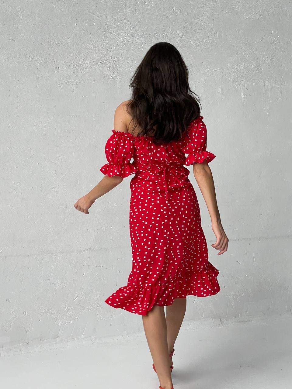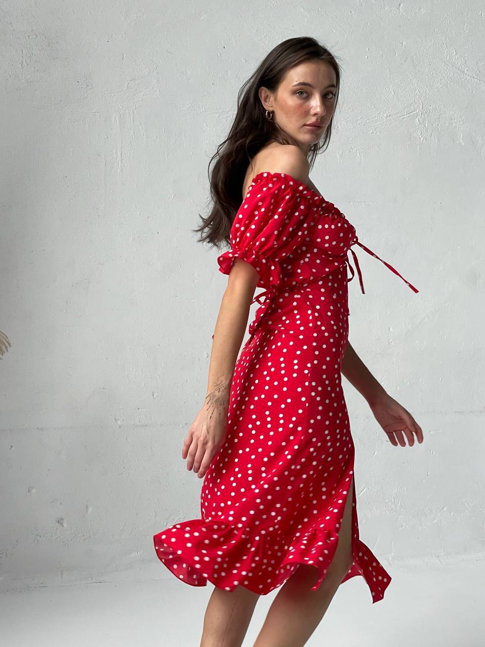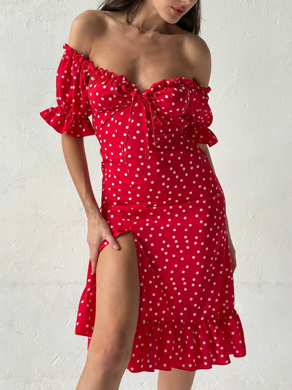 - Платье с открытыми плечами